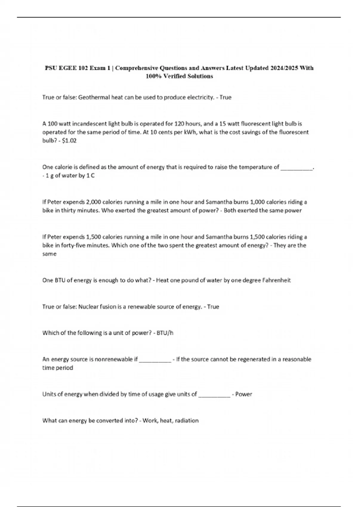 PSU EGEE 102 Exam 1 | Comprehensive Questions and Answers Latest Updated 2024/2025 With 100% Verified Solutions