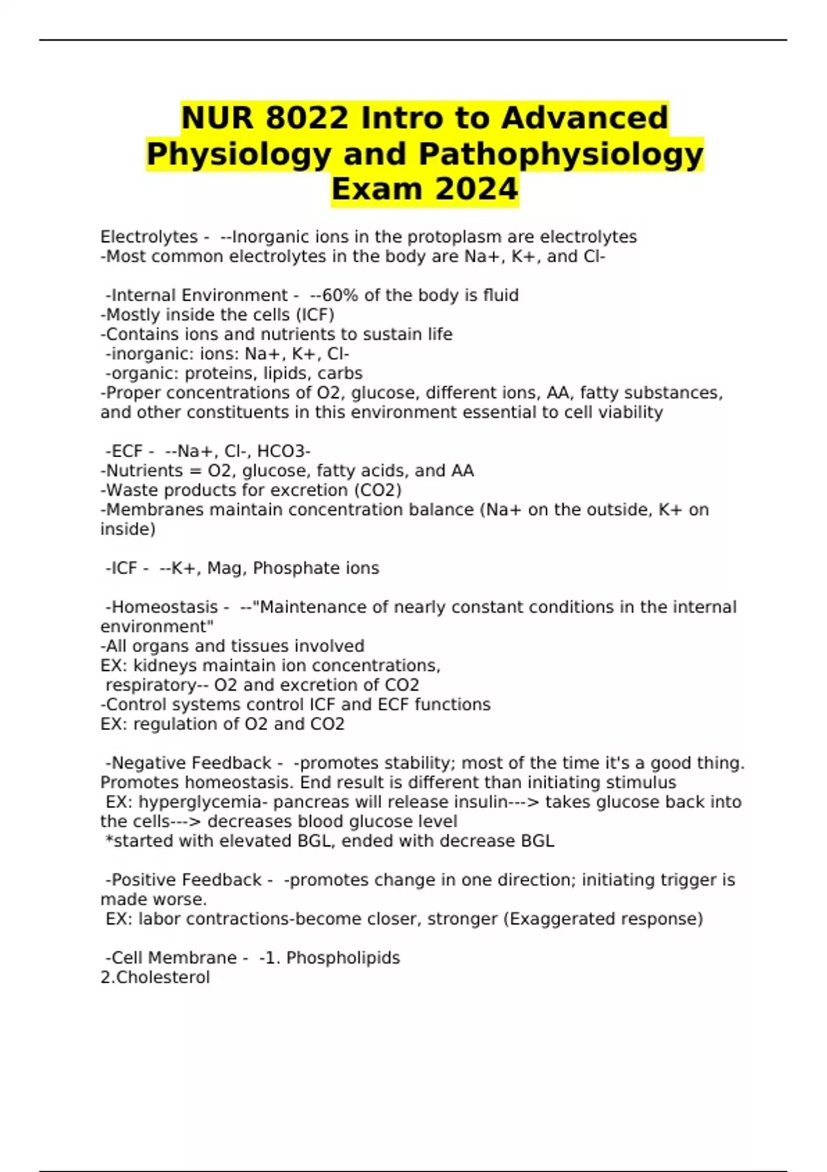 NUR 8022 Intro to Advanced Physiology and Pathophysiology Exam 2024