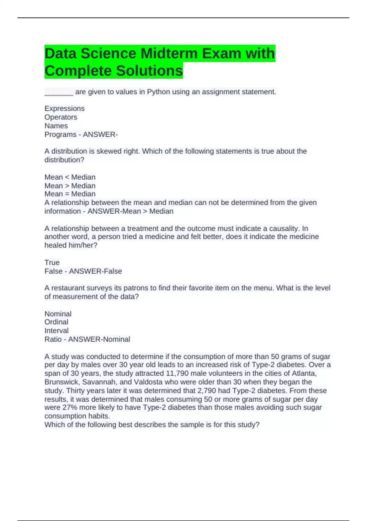 Data Science Midterm Exam with Complete Solutions