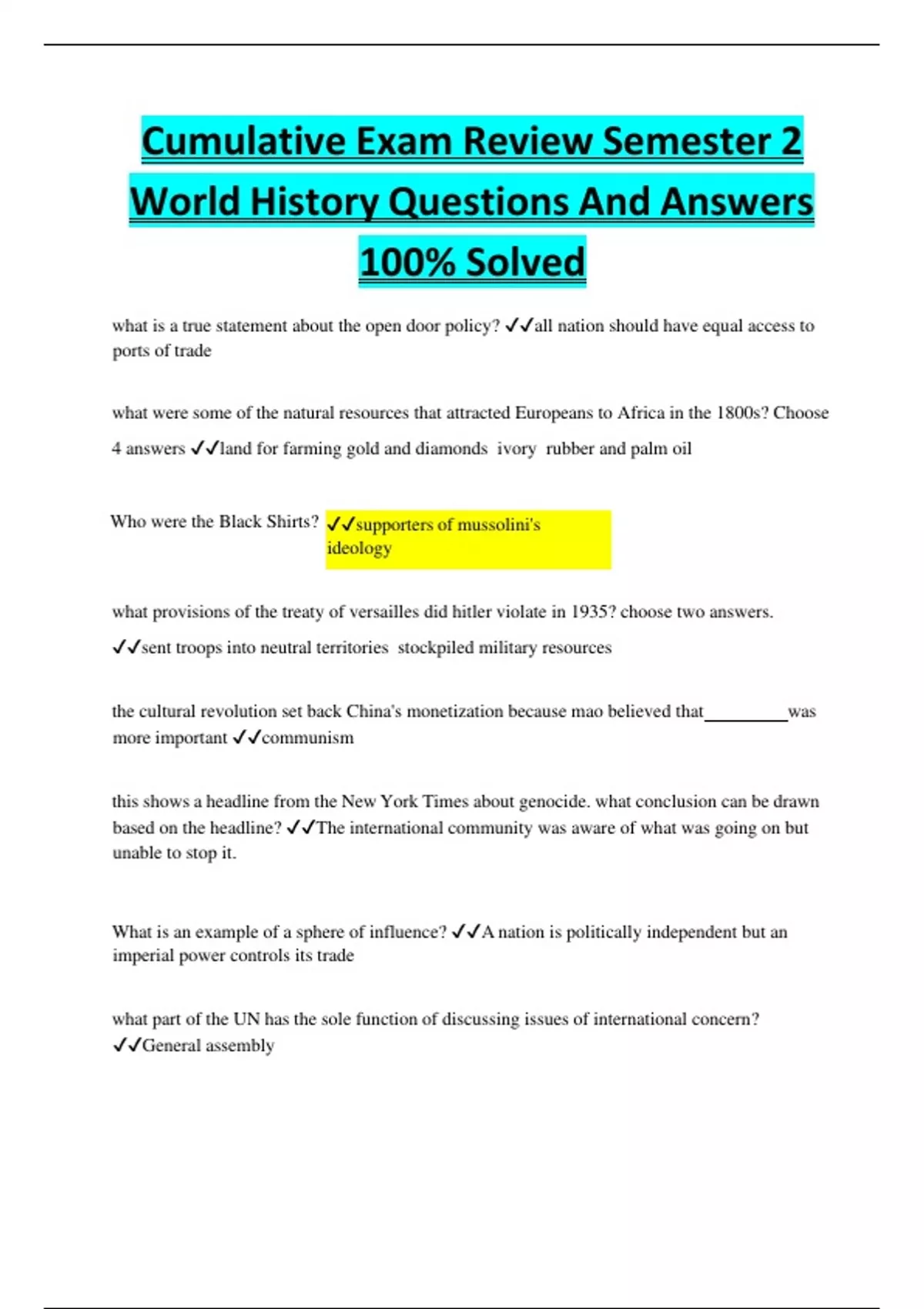 World History Questions And Answers