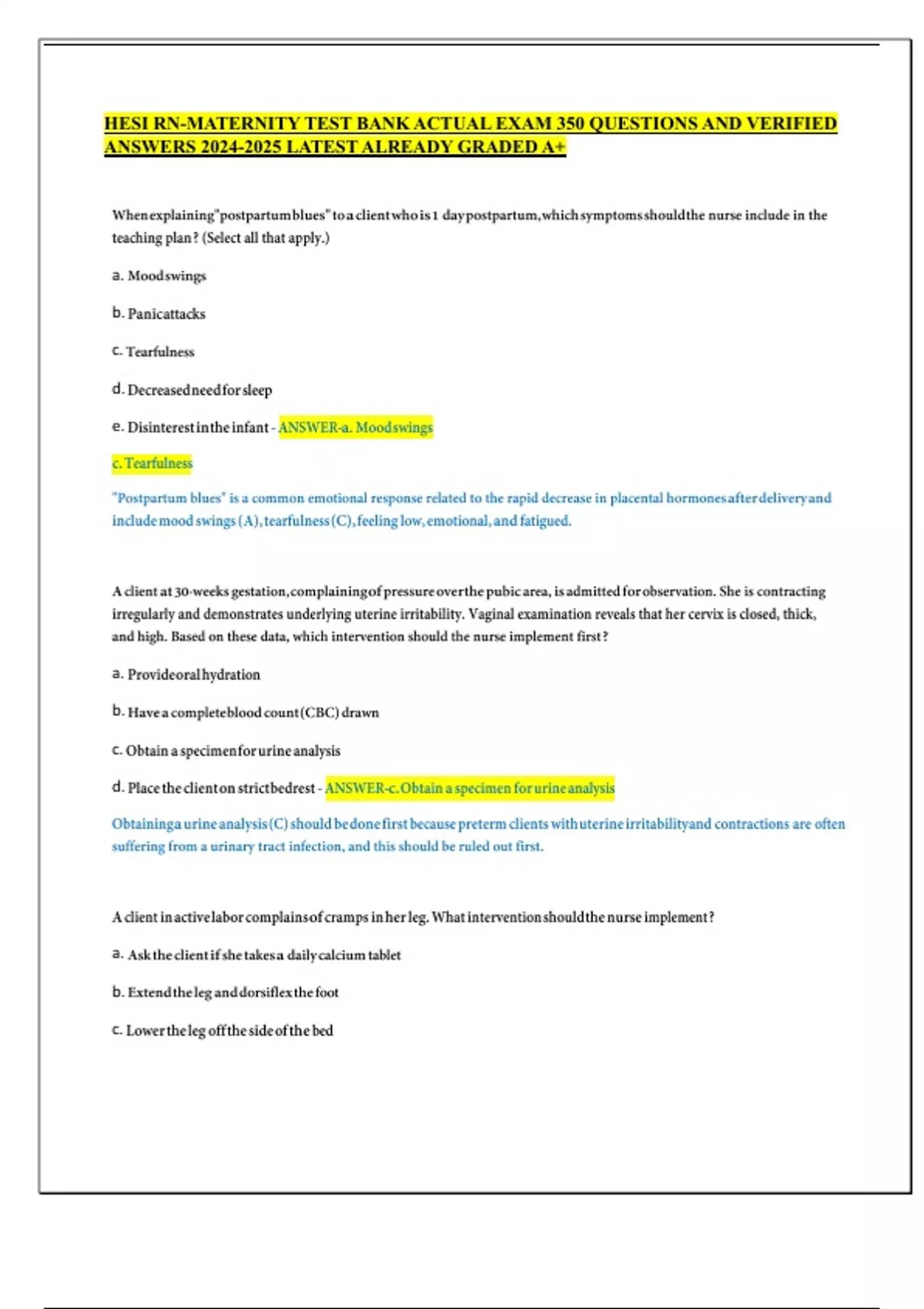 HESI RN-MATERNITY TEST BANK ACTUAL EXAM 350 QUESTIONS AND VERIFIED ANSWERS 2024|2025 LATEST ALREADY GRADED A+