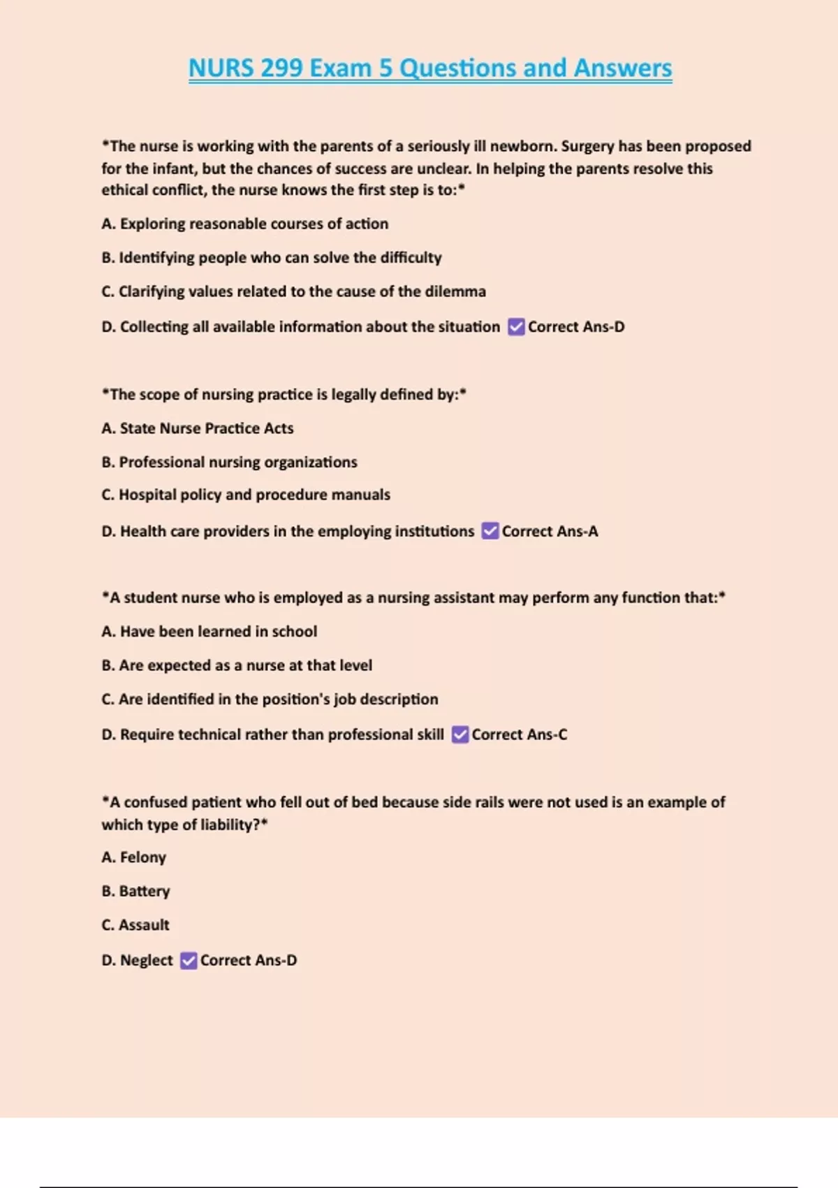 , NURS 299 Exam 5 Questions and Answers