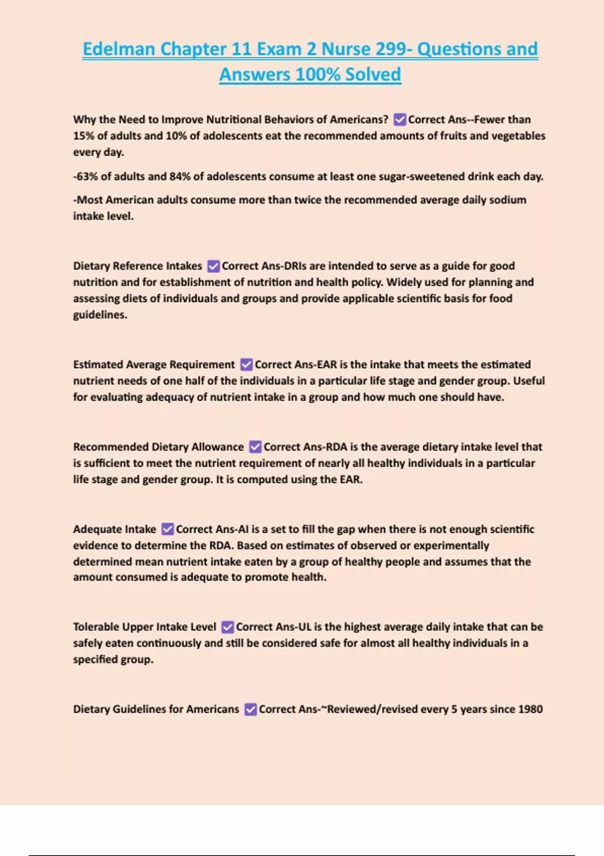 , Edelman Chapter 11 Exam 2 Nurse 299- Questions and
