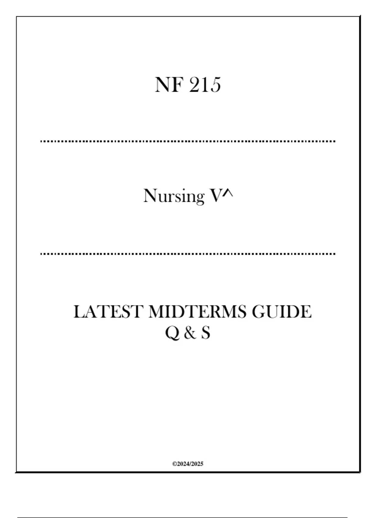 HU-NF 215 (Nursing V-) - Latest Midterms Guide Q & S 2024.HU-NF 215 (Nursing V-) - Latest Midterms Guide Q & S 2024.HU-NF 215 (Nursing V-) - Latest Midterms Guide Q & S 2024.HU-NF 215 (Nursing V-) - Latest Midterms Guide Q & S 2024.