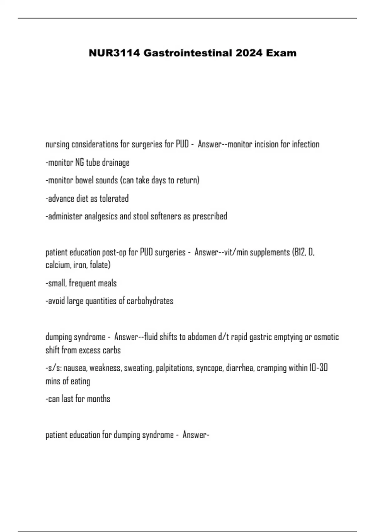 nursing considerations for surgeries for PUD - Answer--monitor incision for infection