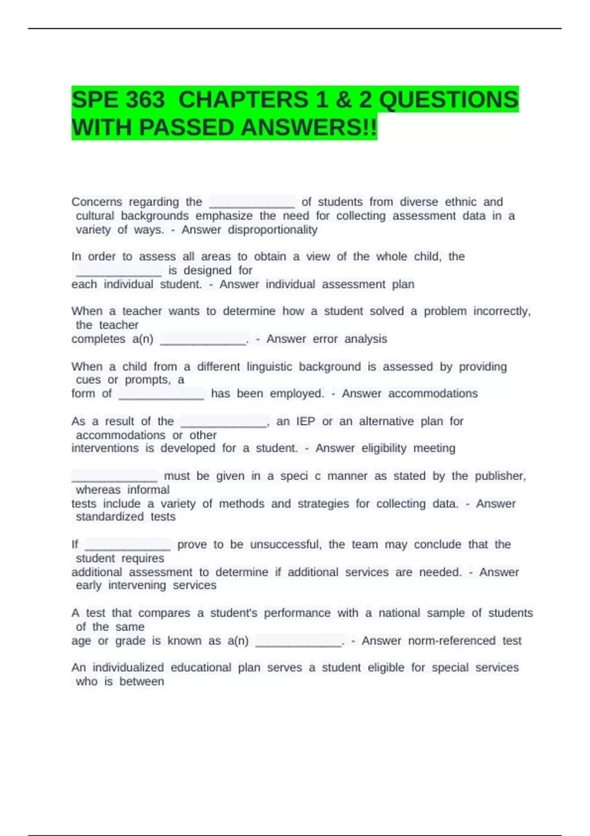 SPE 363 CHAPTERS 1 & 2 QUESTIONS WITH PASSED ANSWERS!!.