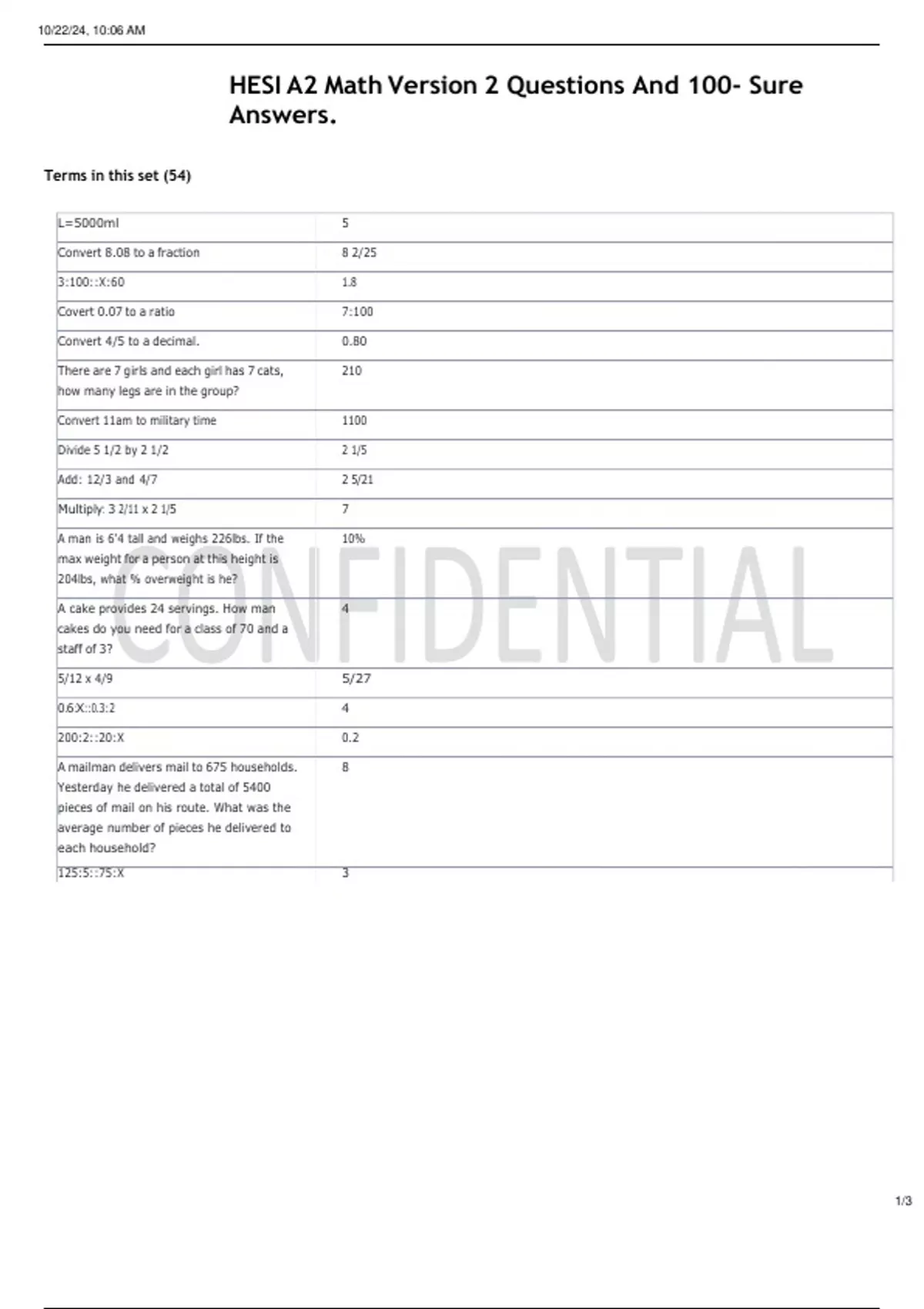 HESI A2 Math Version 2 Questions And 100- Sure Answers..