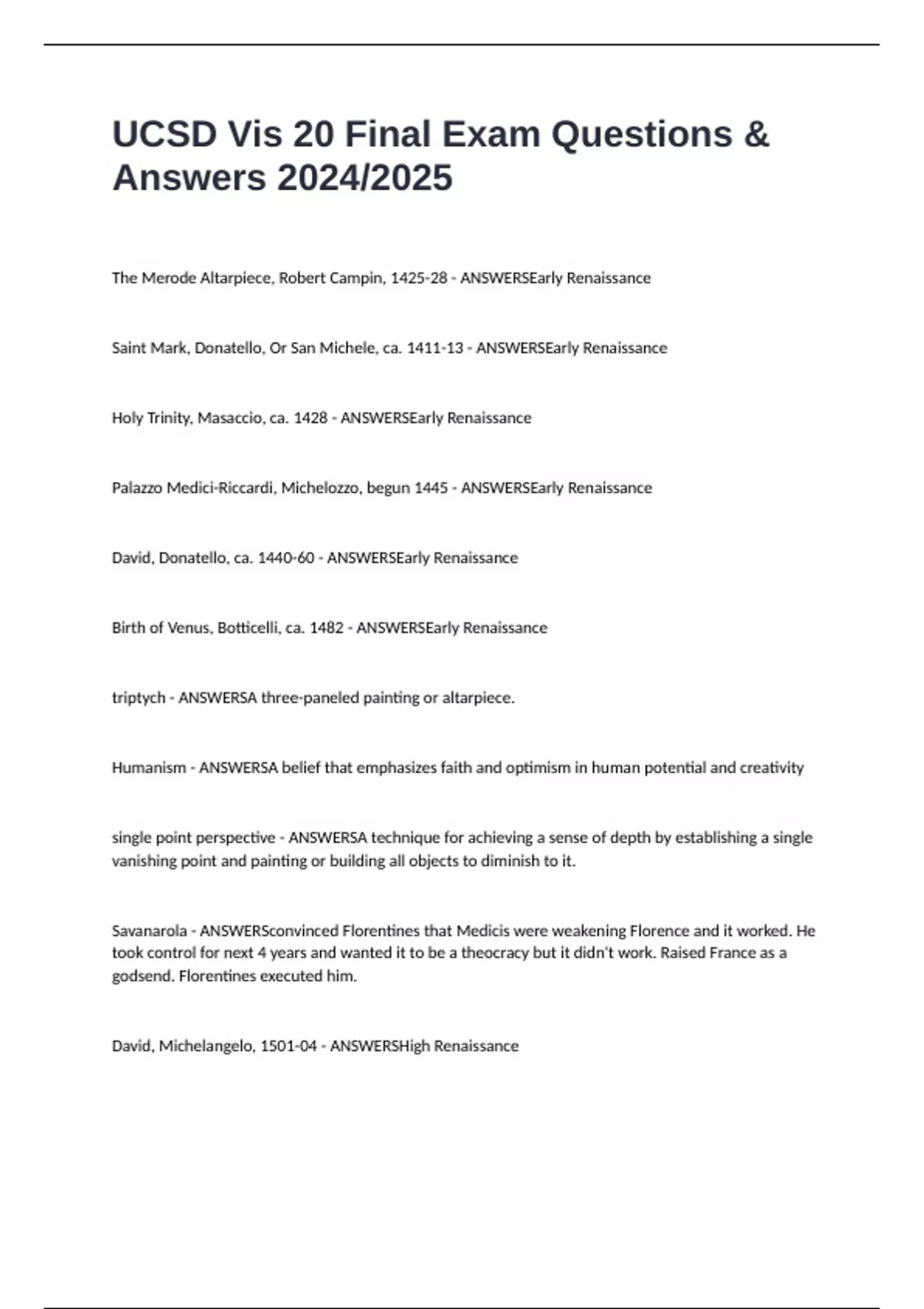 Holy Trinity, Masaccio, ca. 1428 - ANSWERSEarly Renaissance