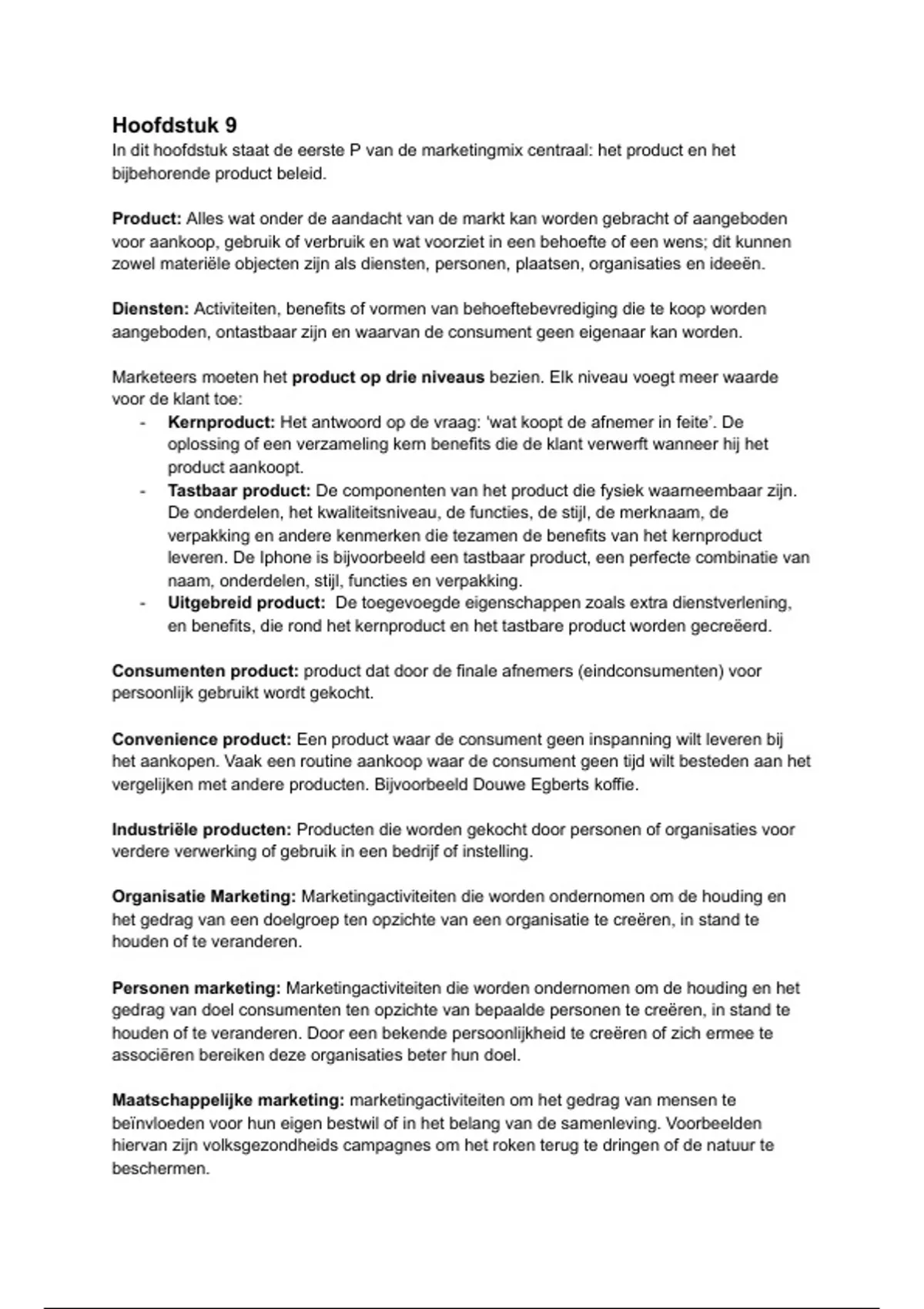 In dit hoofdstuk staat de eerste P van de marketingmix centraal: het product en het