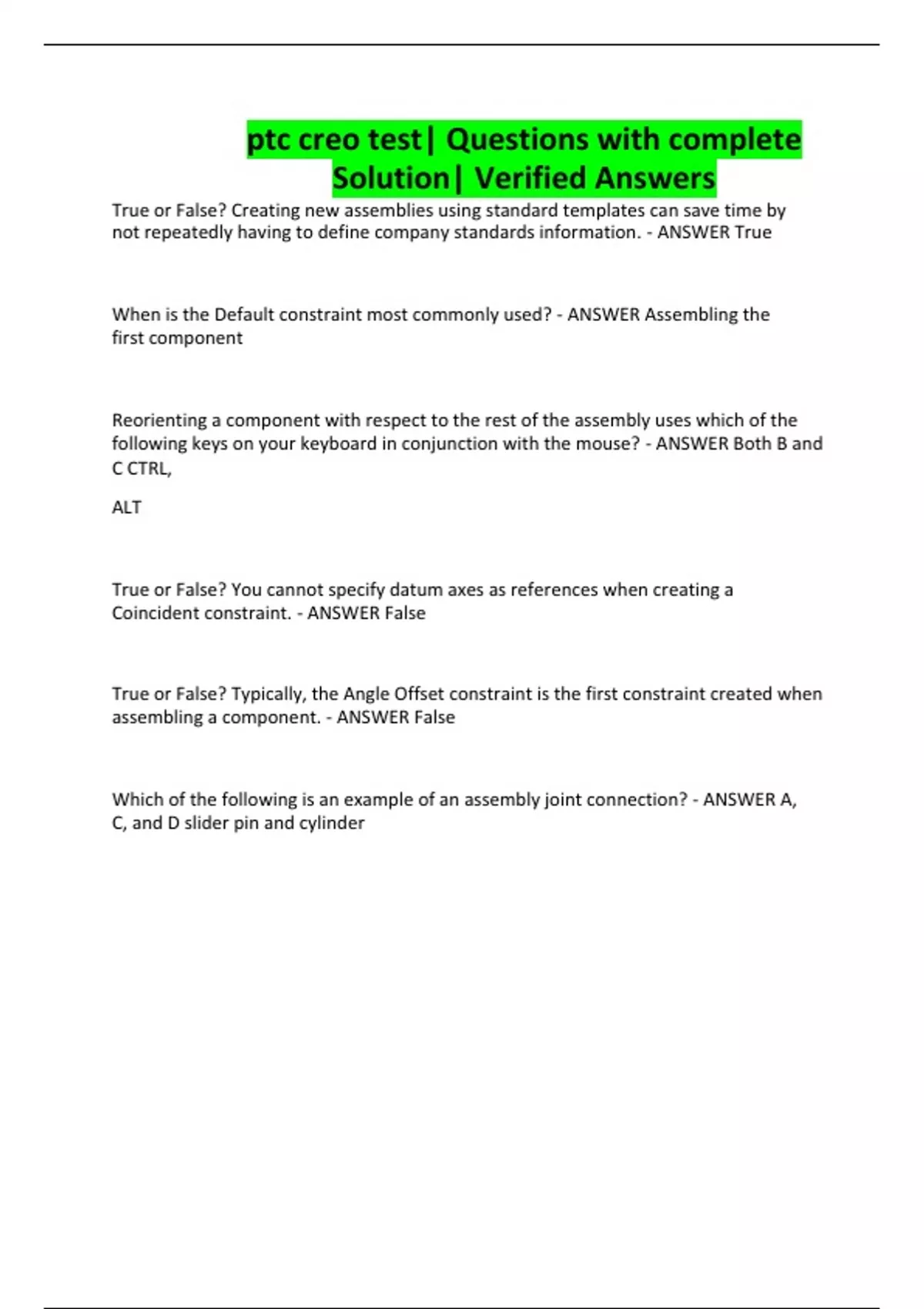 ptc creo test| Questions with complete