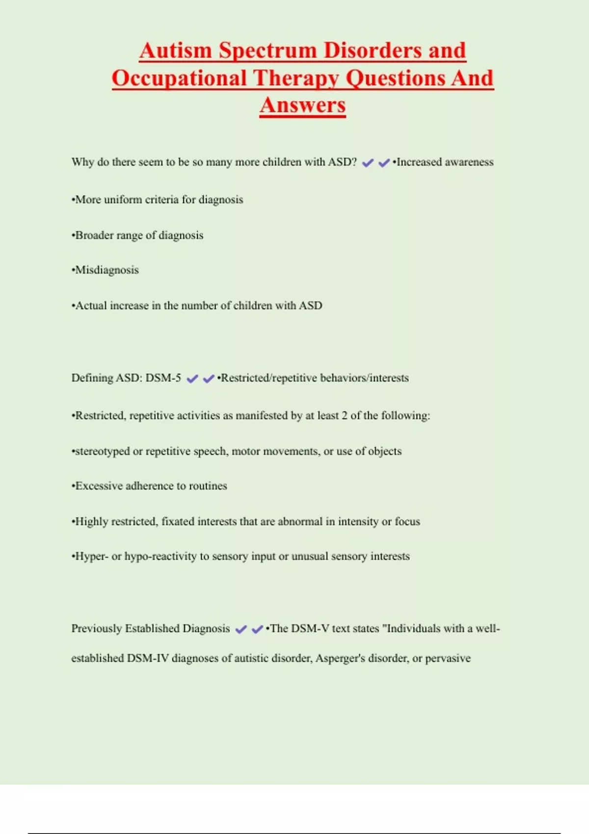 Autism Spectrum Disorders and Occupational Therapy Questions And Answers
