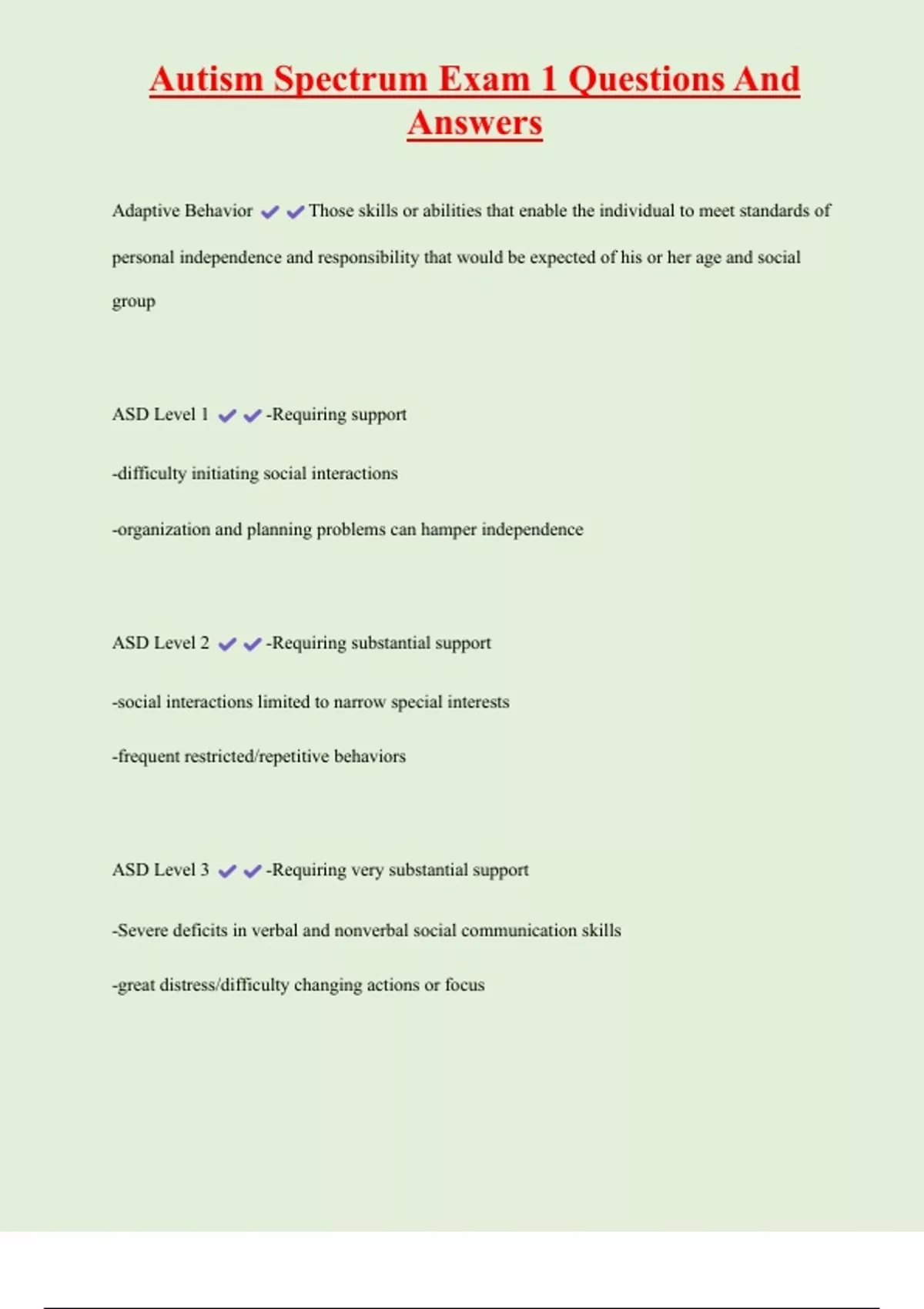, Autism Spectrum Exam 1 Questions And