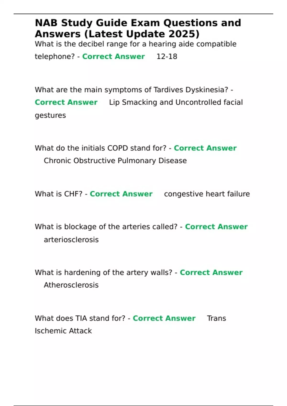 , NAB Study Guide Exam Questions and