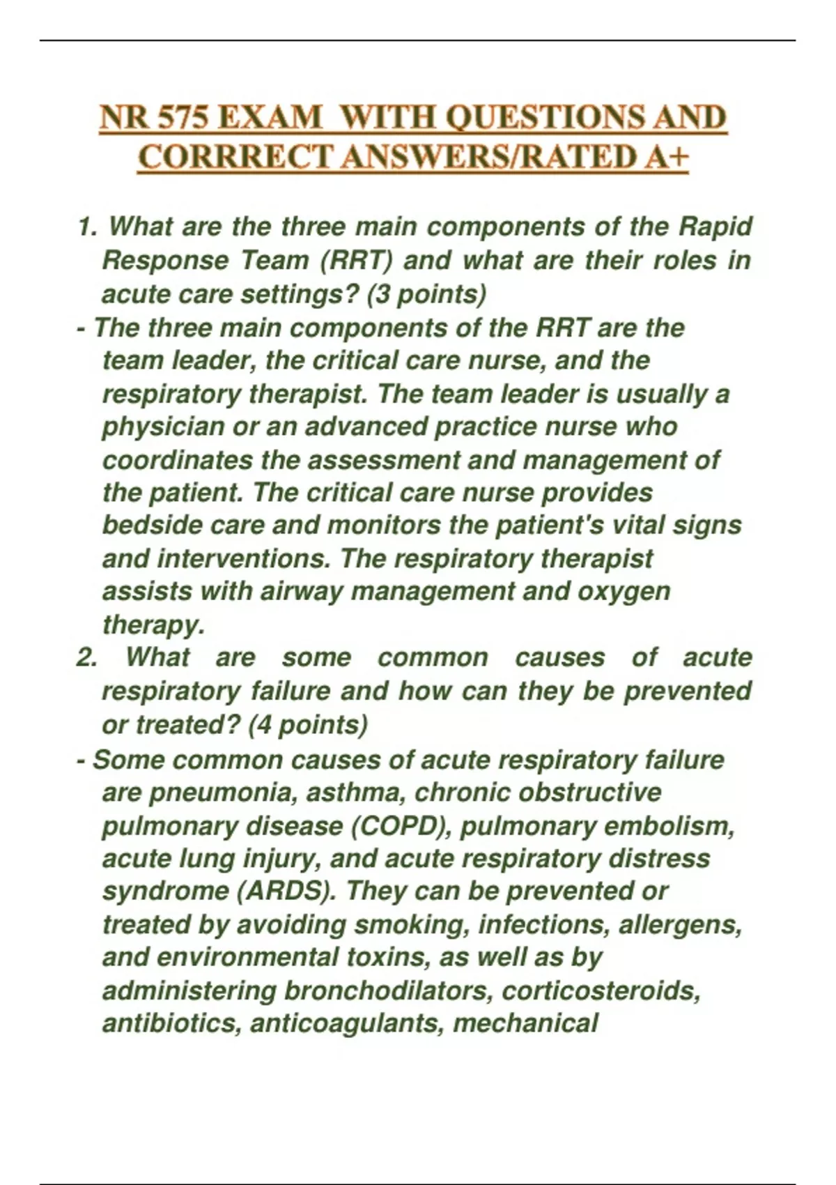 NR 575 EXAM WITH QUESTIONS AND CORRRECT ANSWERS/RATED A+