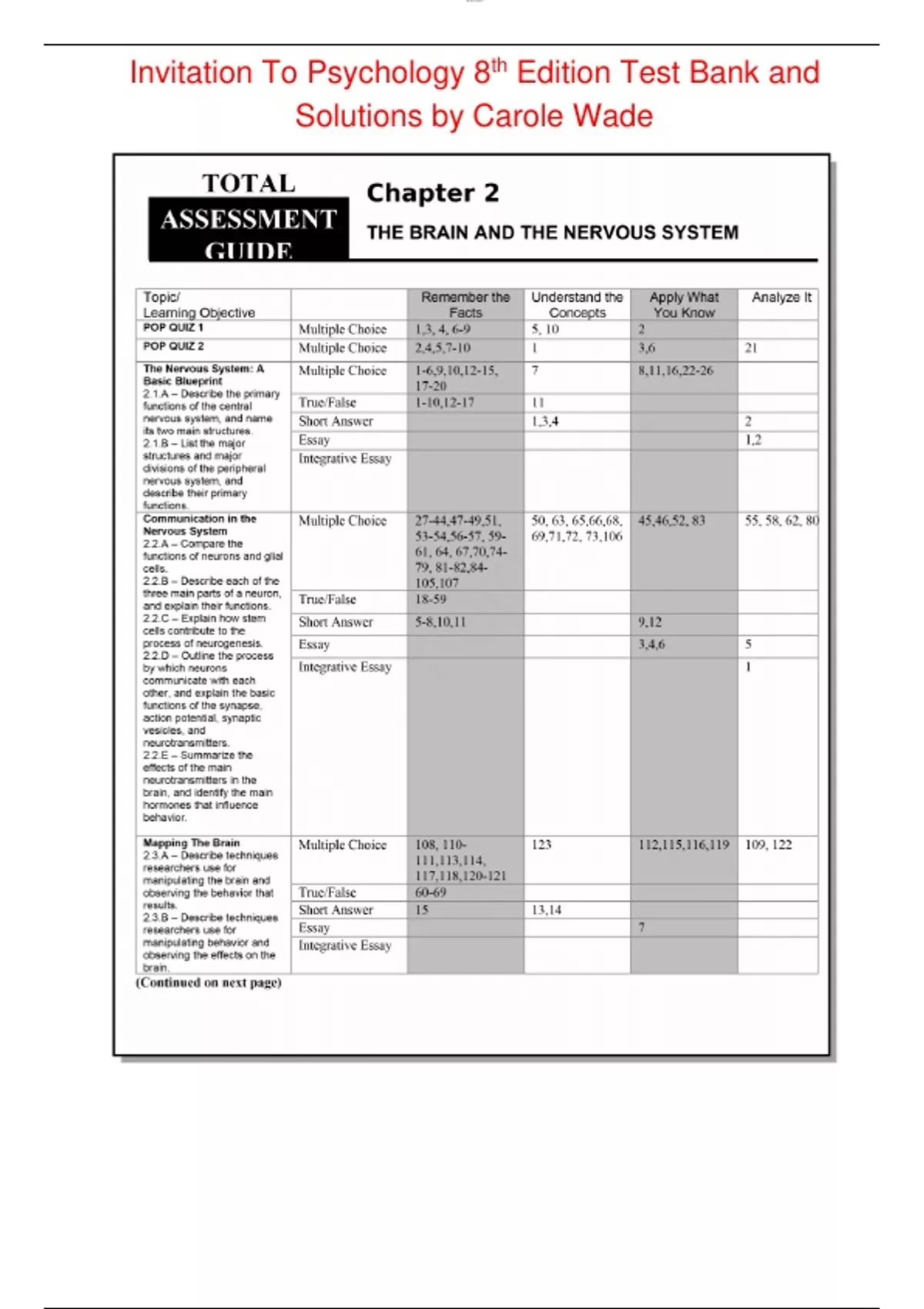Invitation To Psychology 8th Edition Test Bank and Solutions by Carole Wade