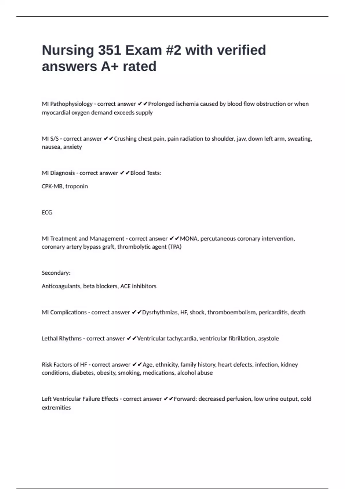 Nursing 351 Exam #2 with verified answers A+ rated