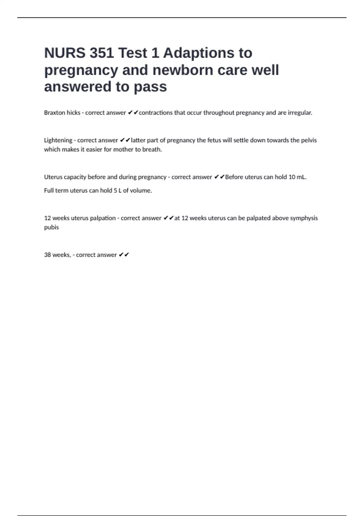 38 weeks, - correct answer ✔✔