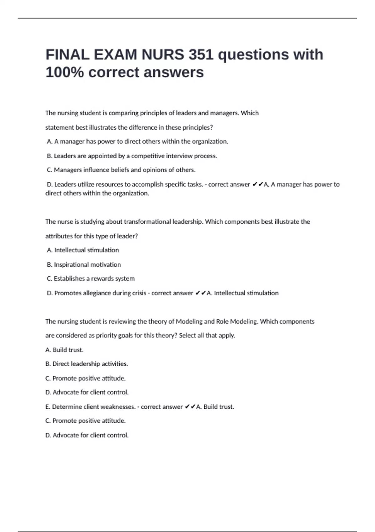 Welcome to Exam Hub Are you looking for high-quality, exam-ready notes, past papers, Test Banks, and well-researched study materials to boost your grades? You’re in the right place! I create and upload detailed, easy-to-understand, and well-structured documents across multiple subjects. All my materials are designed to help you study , save time, and excel in your coursework and exams! On this page NURSING EXAMS,STUDY GUIDES,TESTBANKS AND QUALITY EXAMS IS THE KEY TO STUDENTS CAREER EXCELLENCE, you find all documents, package deals, and flashcards offered by BravelRadon (EXAM HUB STORES!)....kindly recommend a friend for A+ GARANTEEd either you are a first-year student or final-year graduation! best of luck!