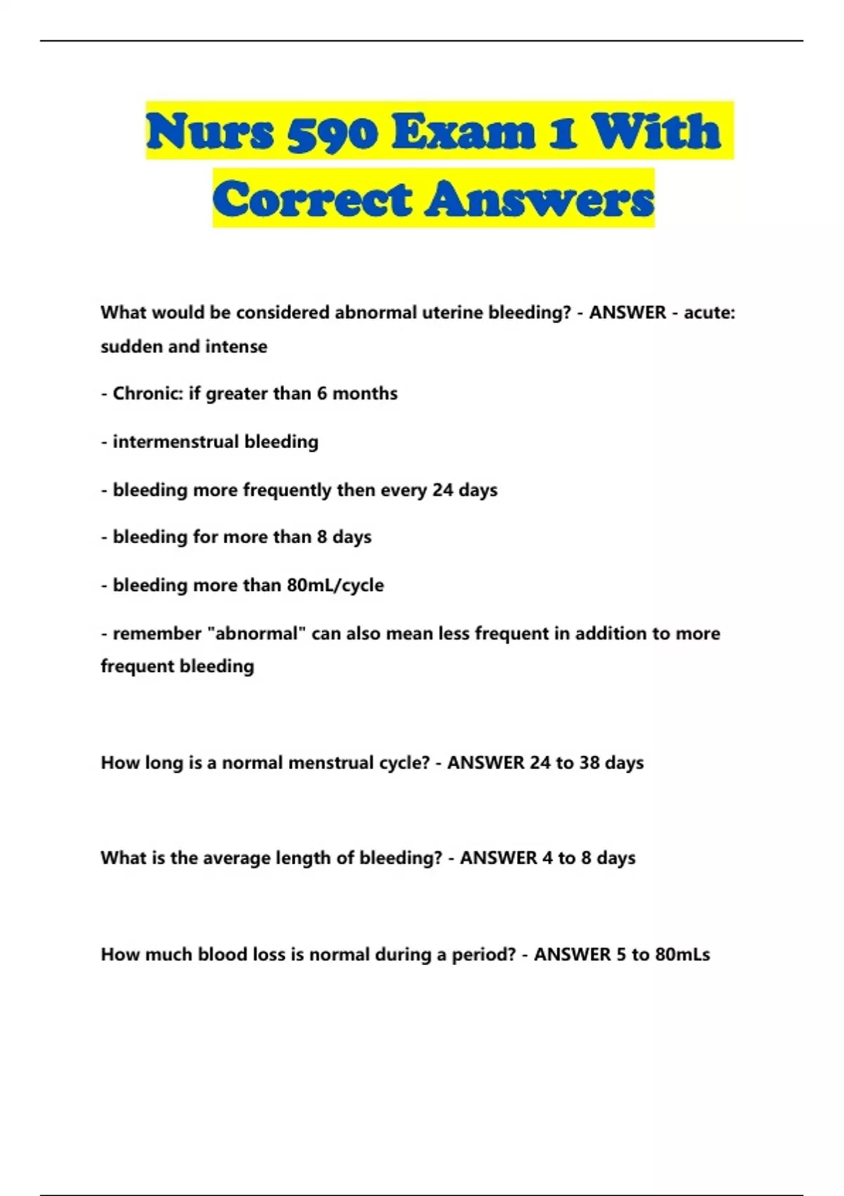 Nurs 590 Exam 1 With Correct Answers...