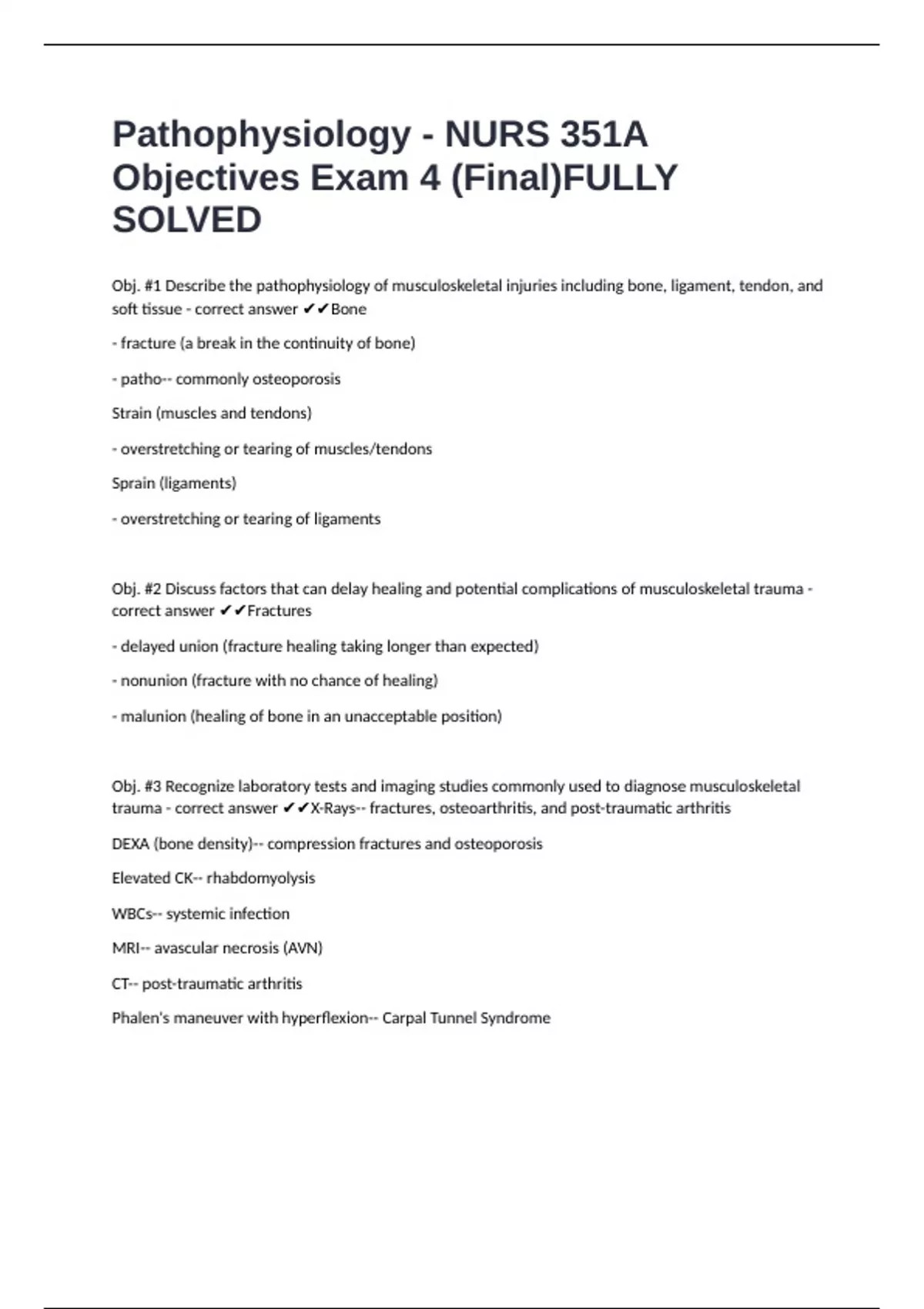 Pathophysiology - NURS 351A Objectives Exam 4 (Final)FULLY SOLVED