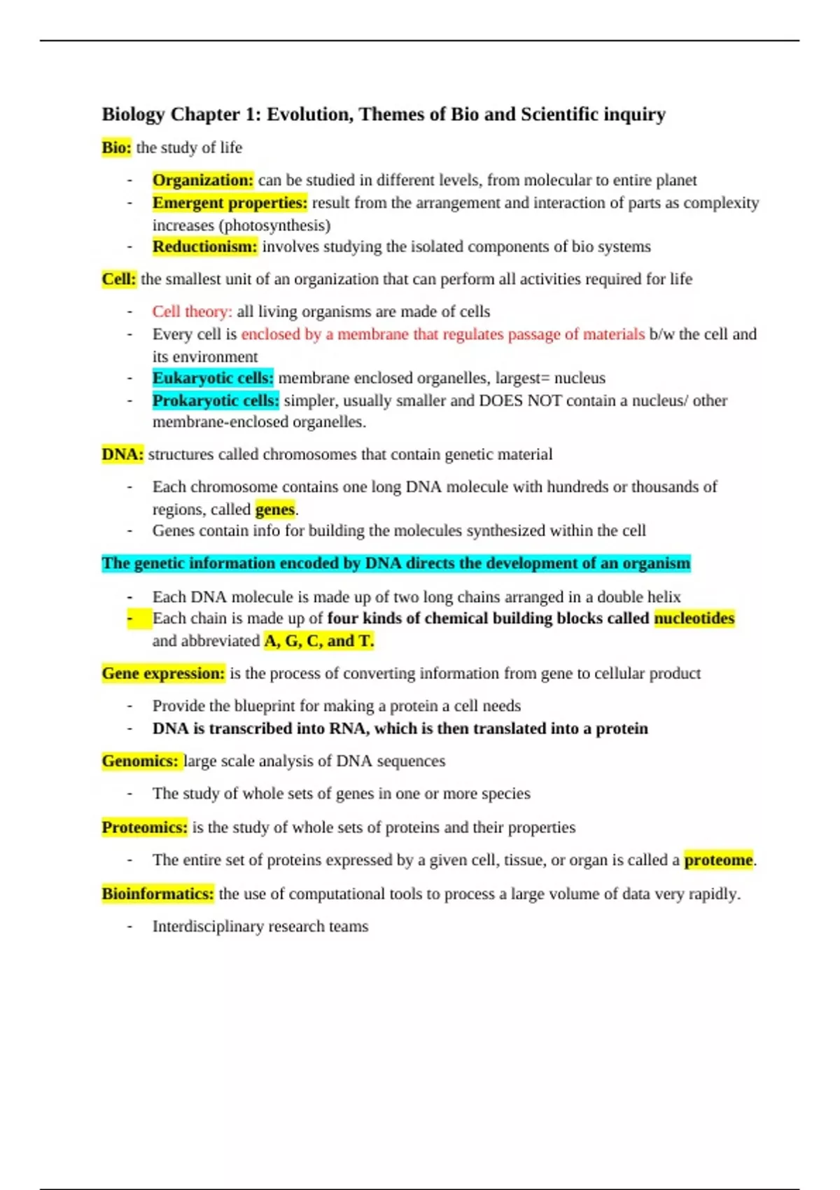 Biology Chapter 1: Evolution, Themes of Bio and Scientific inquiry