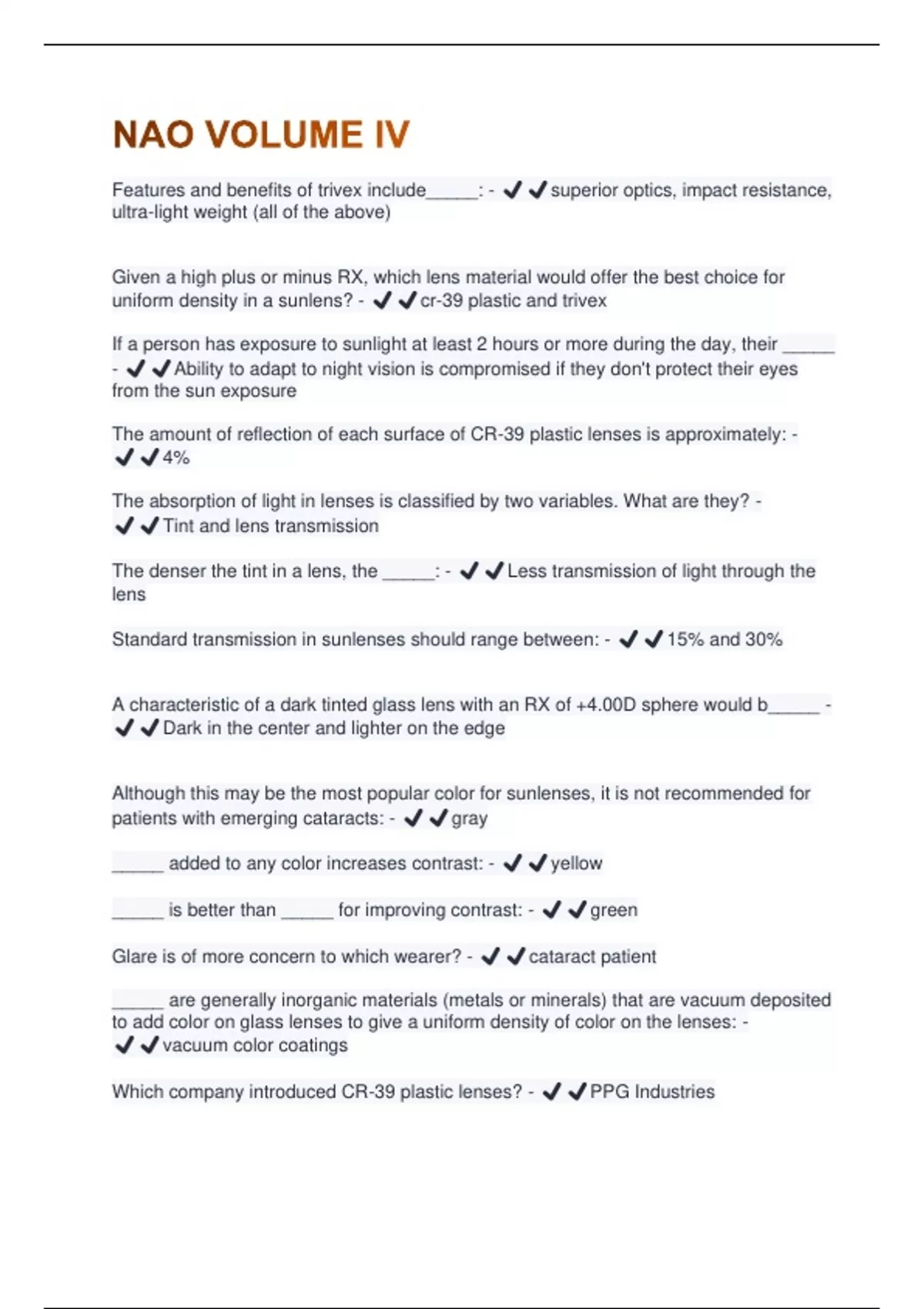 Features and benefits of trivex include_____: - ✔️✔️superior optics, impact resistance,