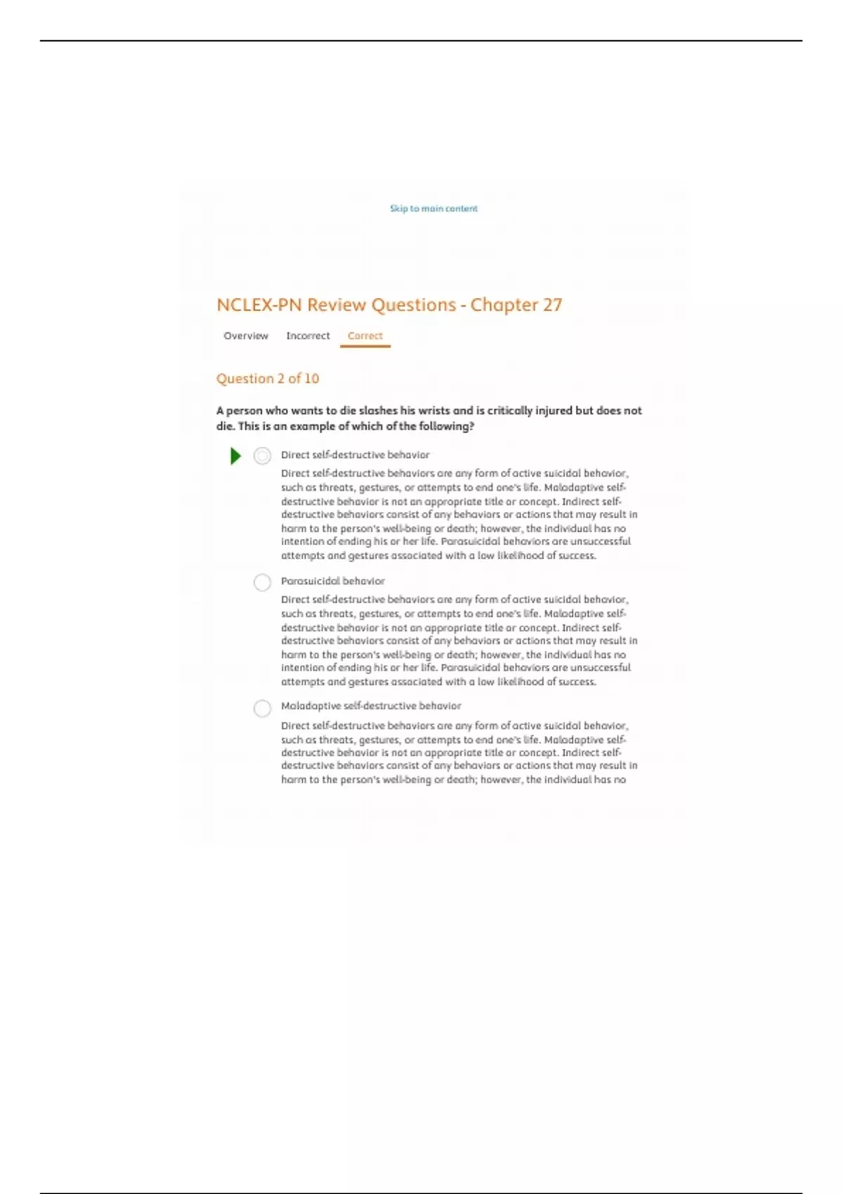 Overview Incorrect Correct