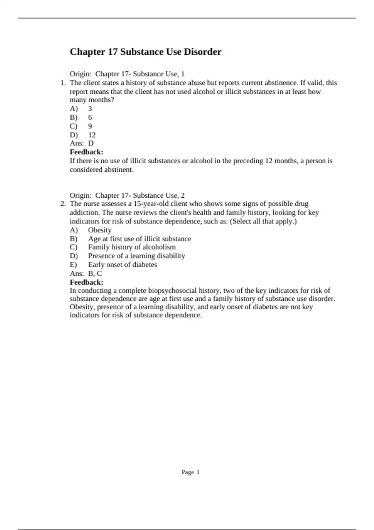 1. The client states a history of substance abuse but reports current abstinence. If valid, this