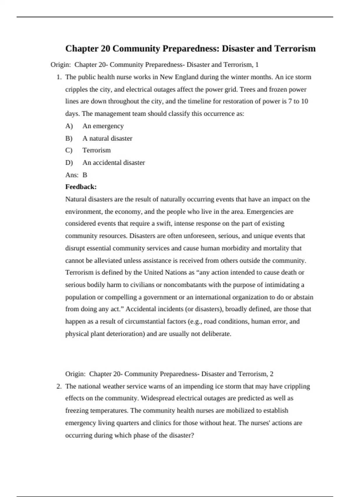 Origin: Chapter 20- Community Preparedness- Disaster and Terrorism, 2