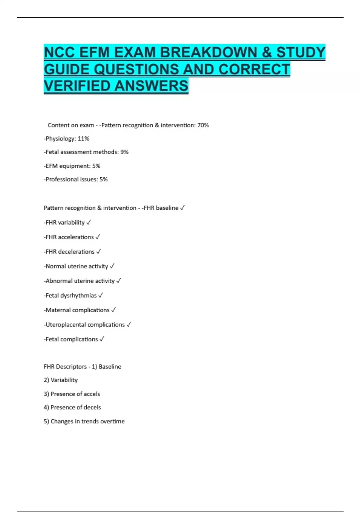 -FHR decelerations ✓