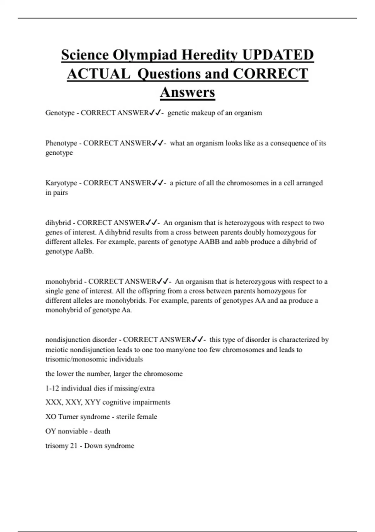 Genotype - CORRECT ANSWER✔✔- genetic makeup of an organism