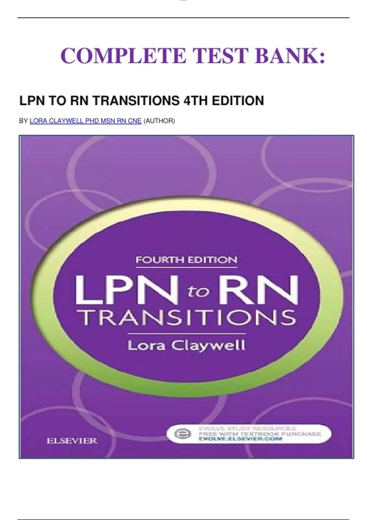 COMPLETE TEST BANK: LPN TO RN TRANSITIONS 4TH EDITION BY LORA CLAYWELL PHD MSN RN CNE (AUTHOR)