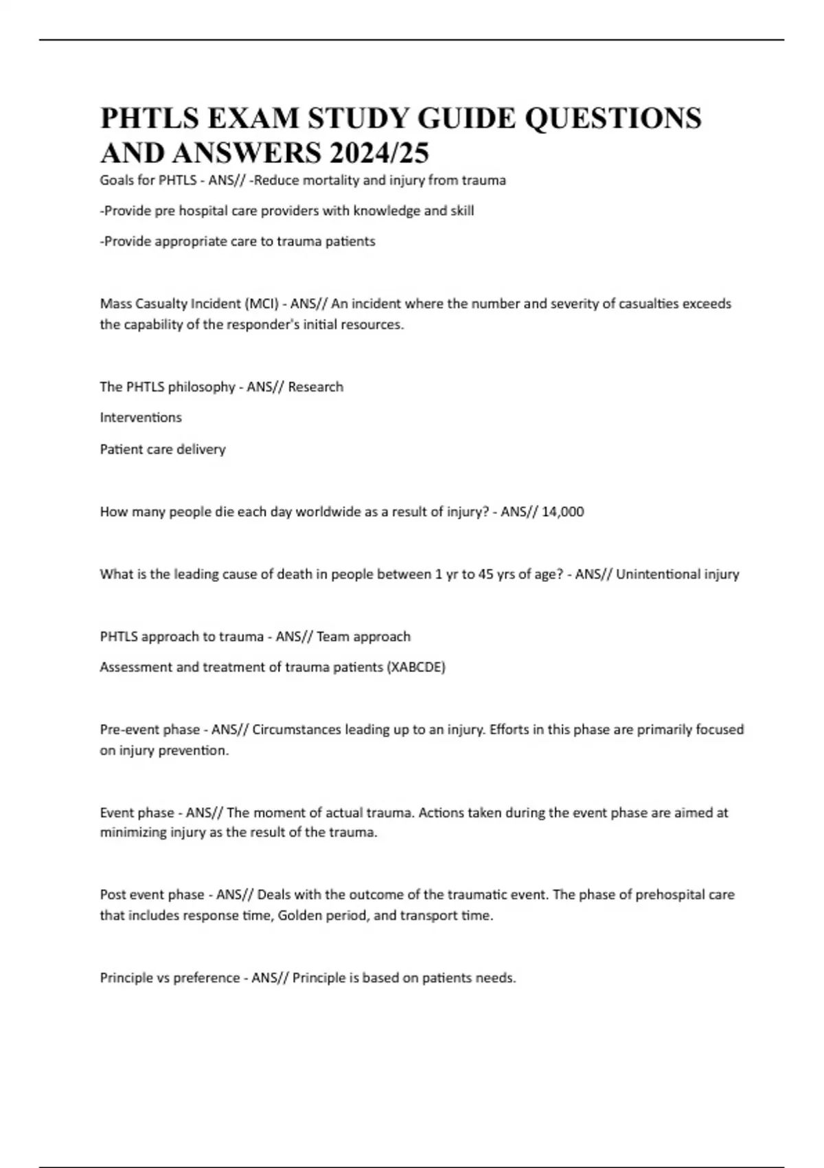 PHTLS EXAM STUDY GUIDE QUESTIONS AND ANSWERS 2024/25