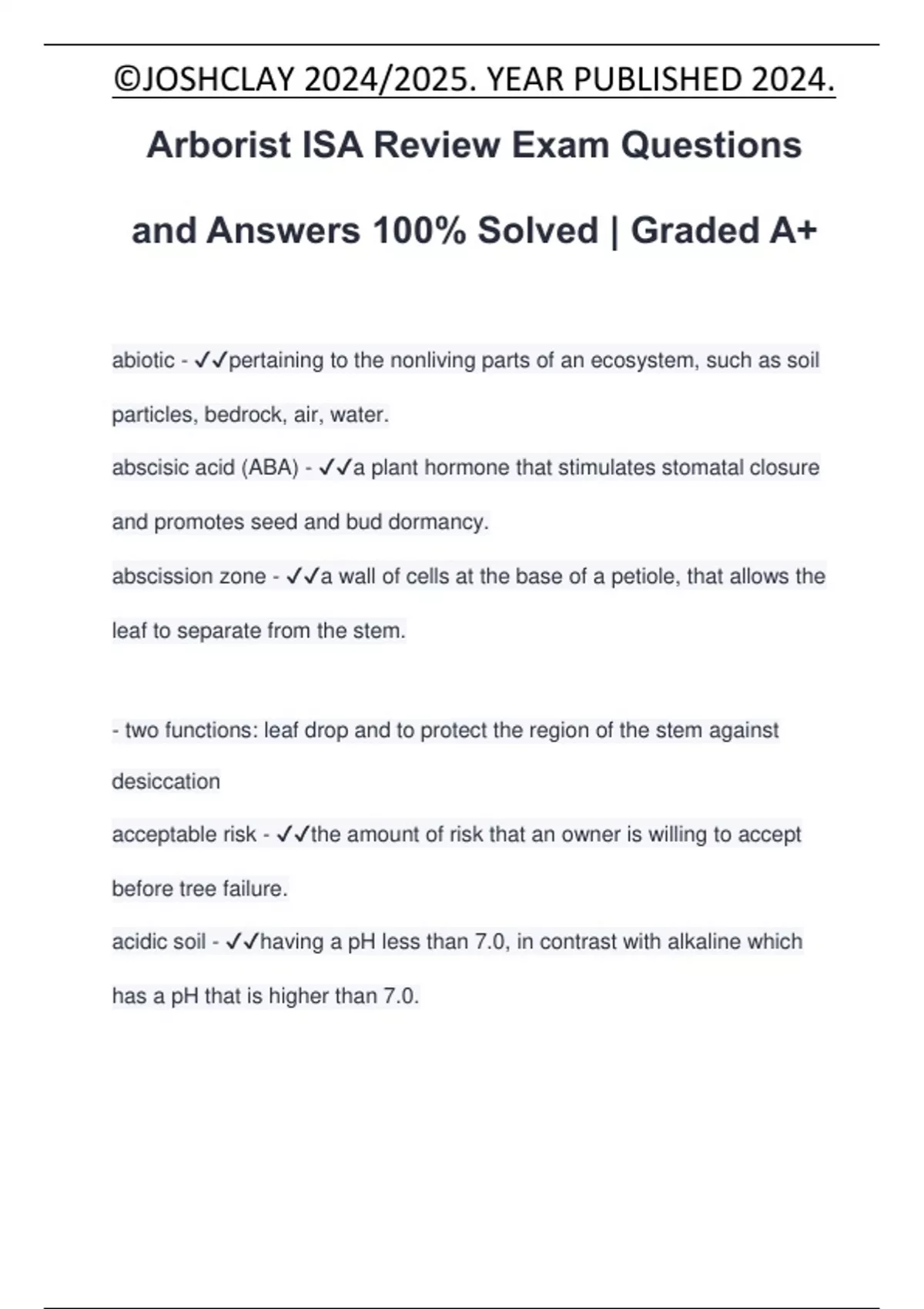 Arborist ISA Review Exam Questions