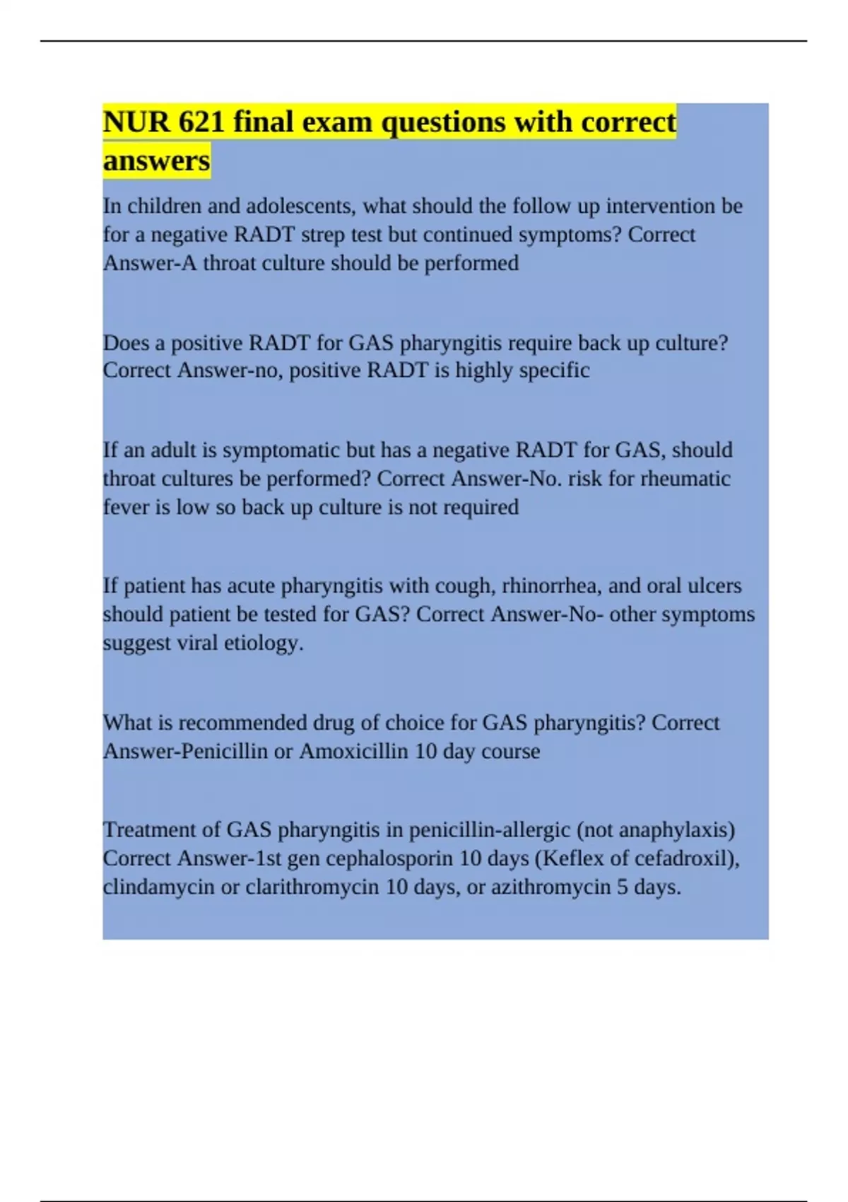 NUR 621 final exam questions with correct