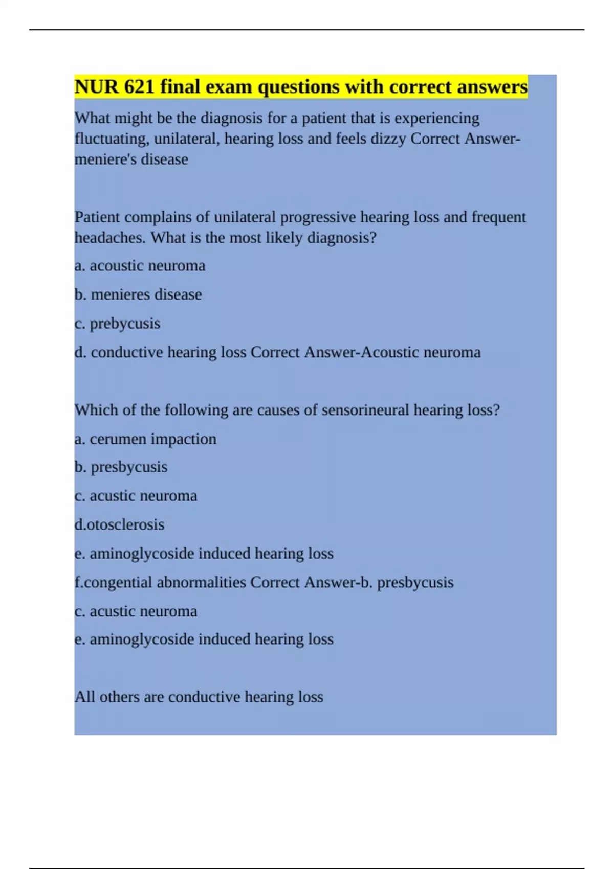 d. conductive hearing loss Correct Answer-Acoustic neuroma