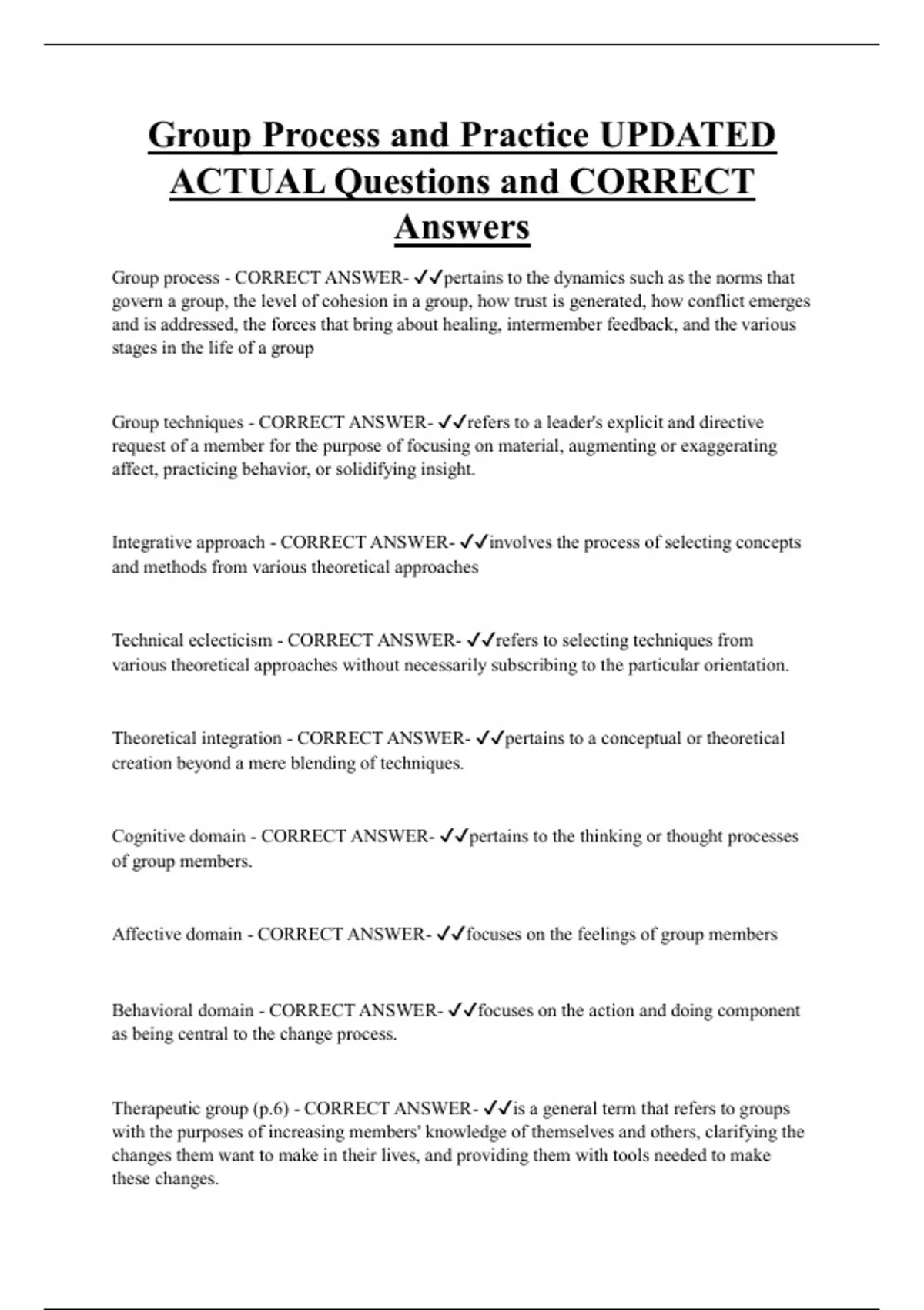 Therapeutic group (p.6) - CORRECT ANSWER- ✔✔is a general term that refers to groups