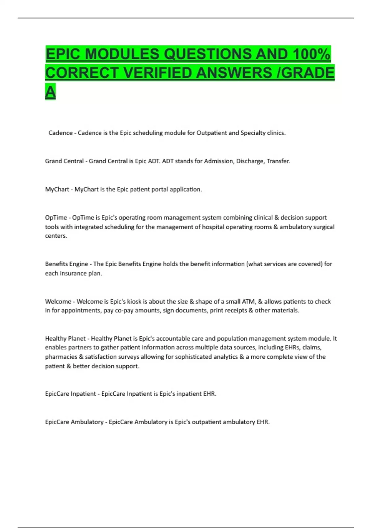 EPIC MODULES QUESTIONS AND 100%