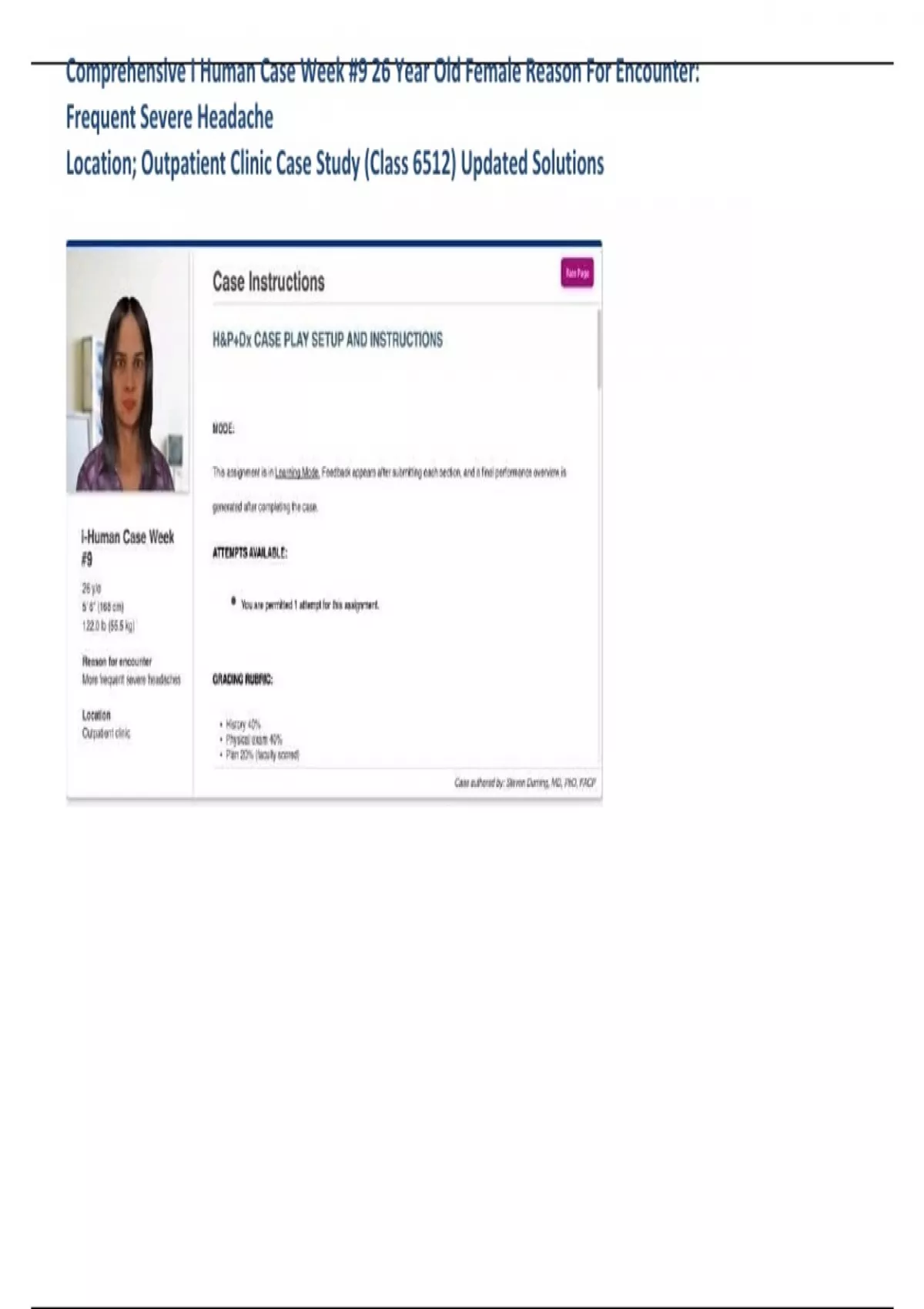 ,Comprehensive I Human Case Week #9 26 Year Old Female Reason For Encounter: