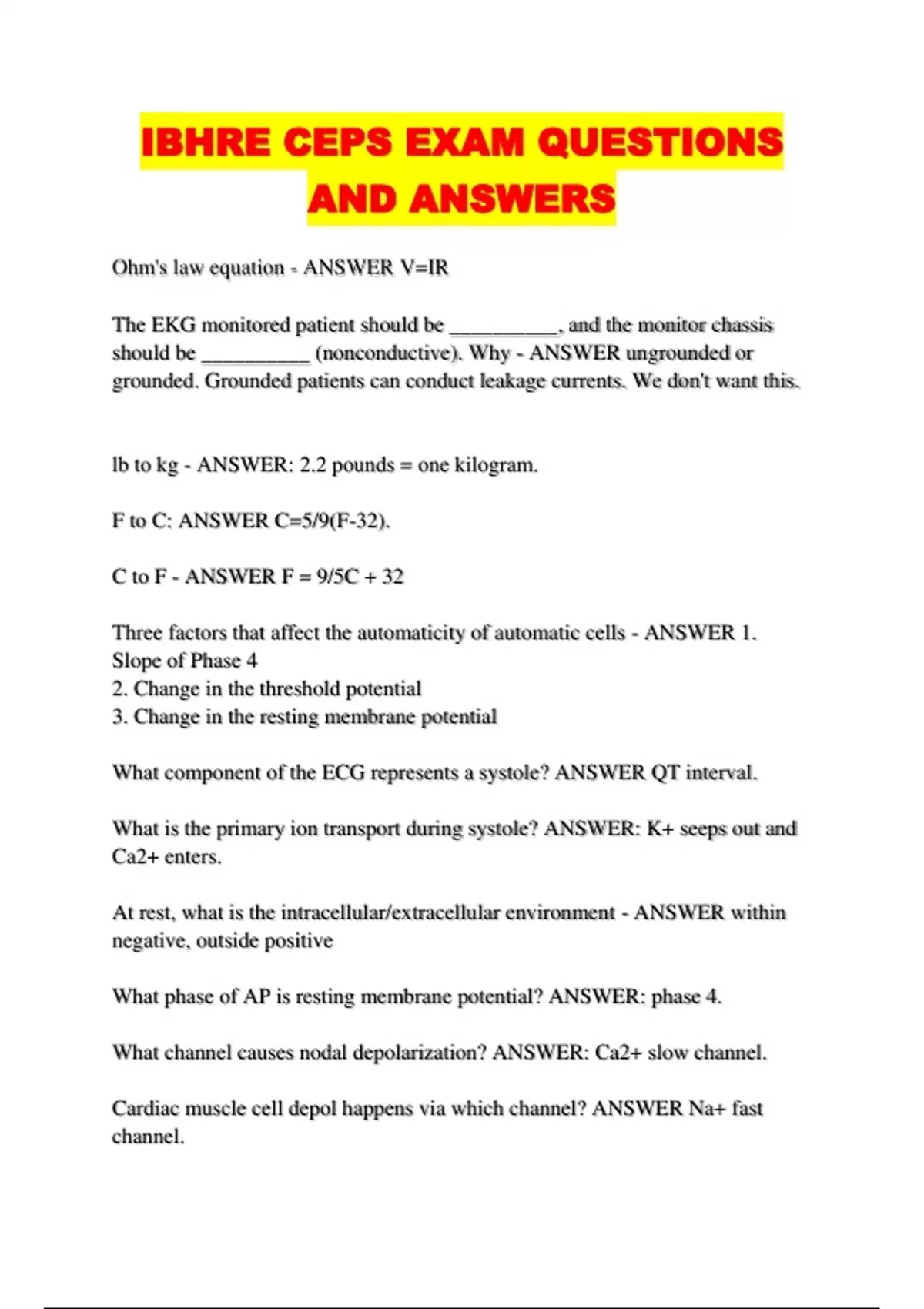 IBHRE CEPS EXAM QUESTIONS AND ANSWERS...