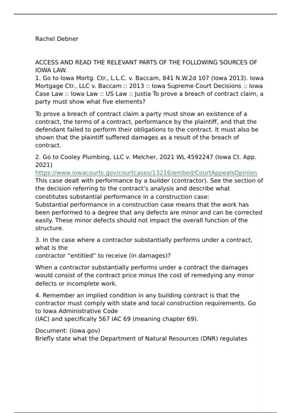 Case Law :: Iowa Law :: US Law :: Justia To prove a breach of contract claim, a