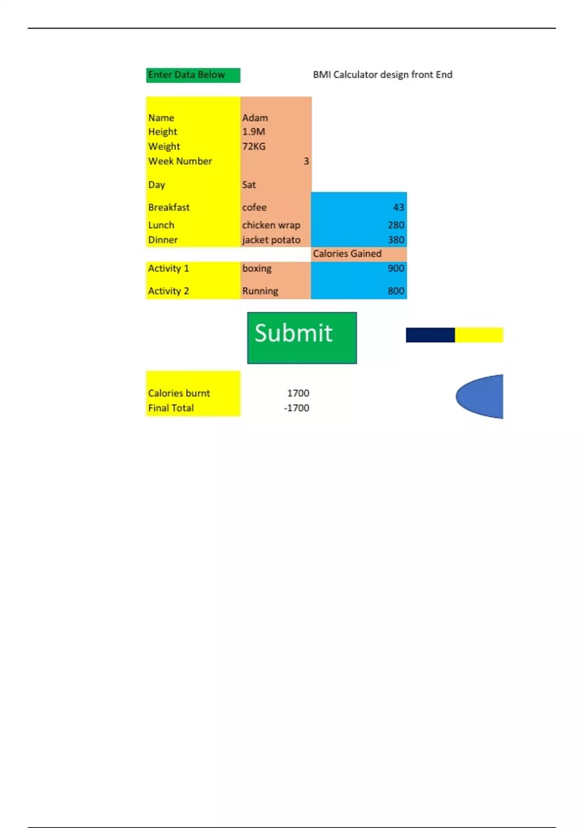 Unit 5 data modelling excel spreadsheet to track calories