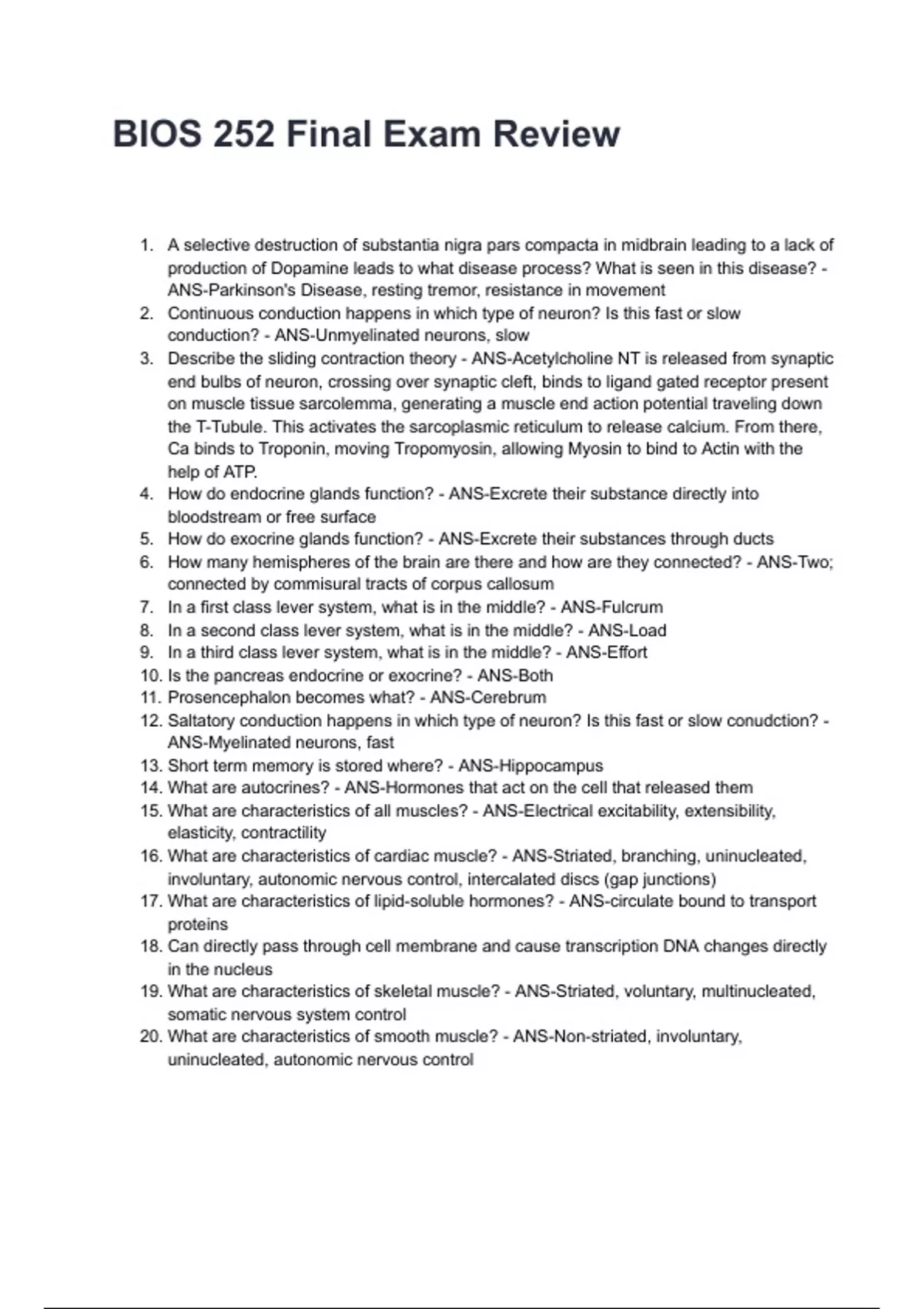 BIOS 252 Final Exam Review
