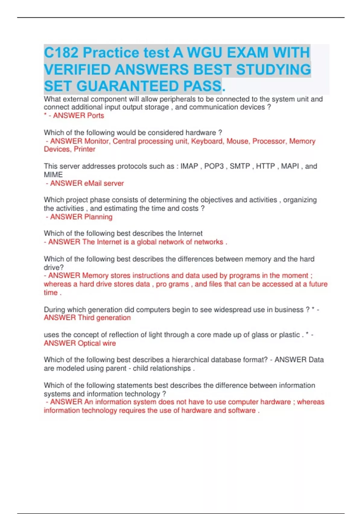 C182 Practice test A WGU EXAM WITH