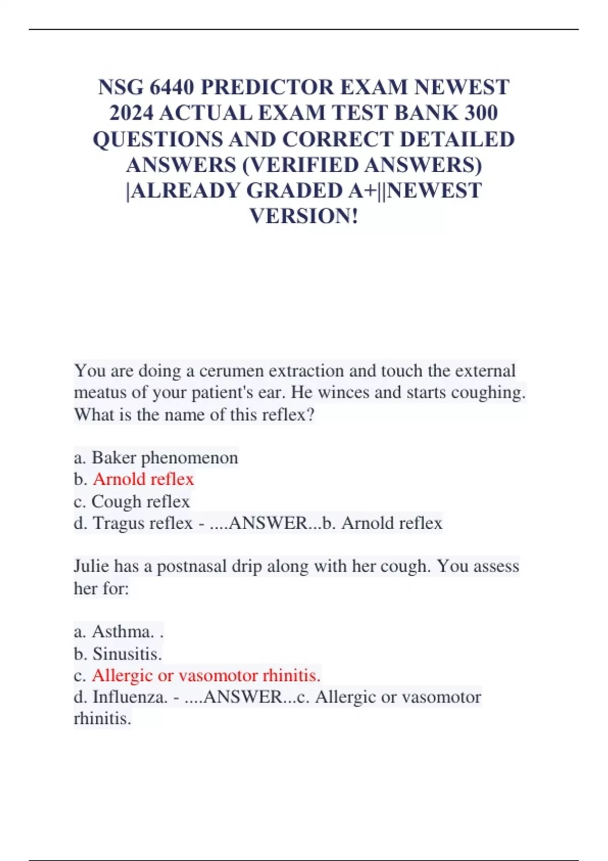 2024 ACTUAL EXAM TEST BANK 300