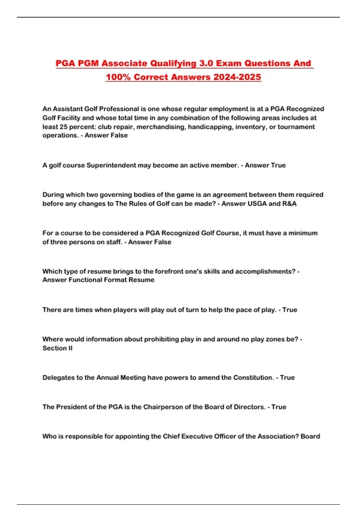 PGA PGM Associate Qualifying 3.0 Exam Questions And 100% Correct Answers ...