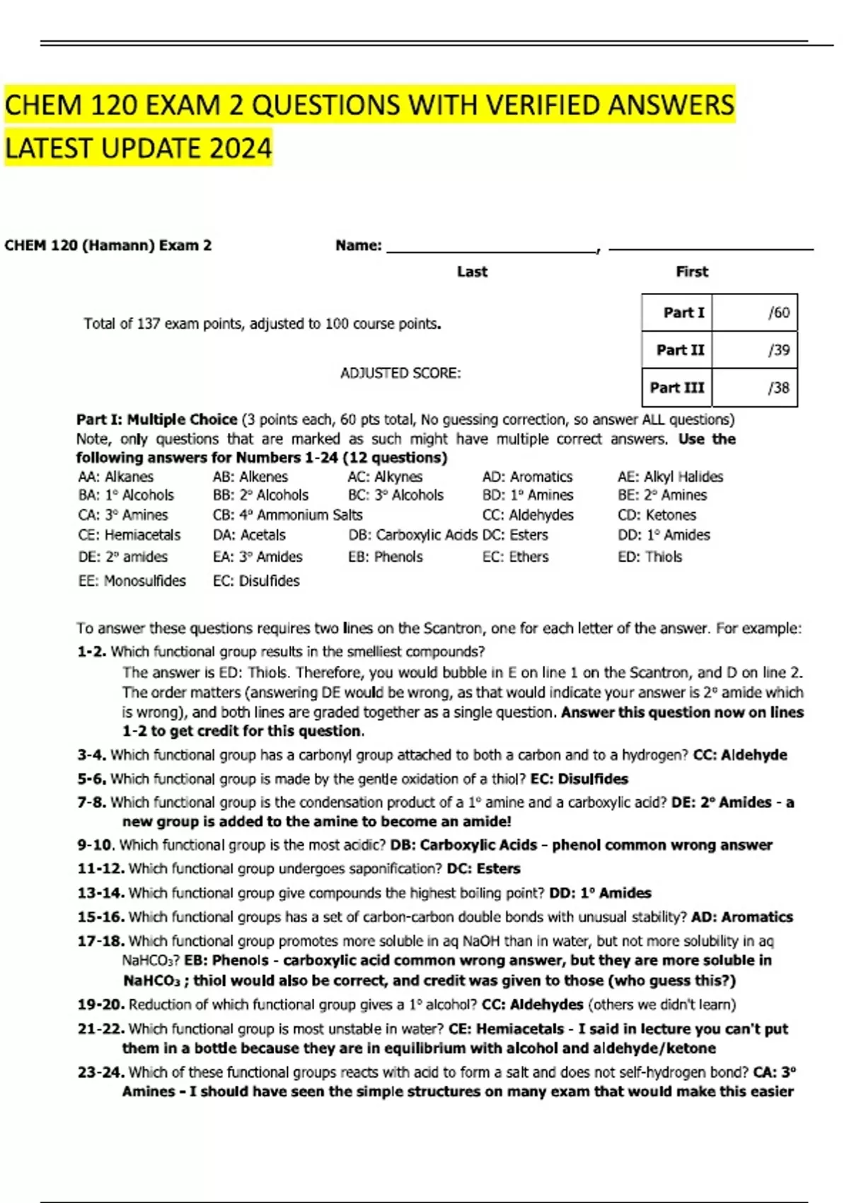 CHEM 120 EXAM 2 QUESTIONS WITH VERIFIED ANSWERS LATEST UPDATE 2024
