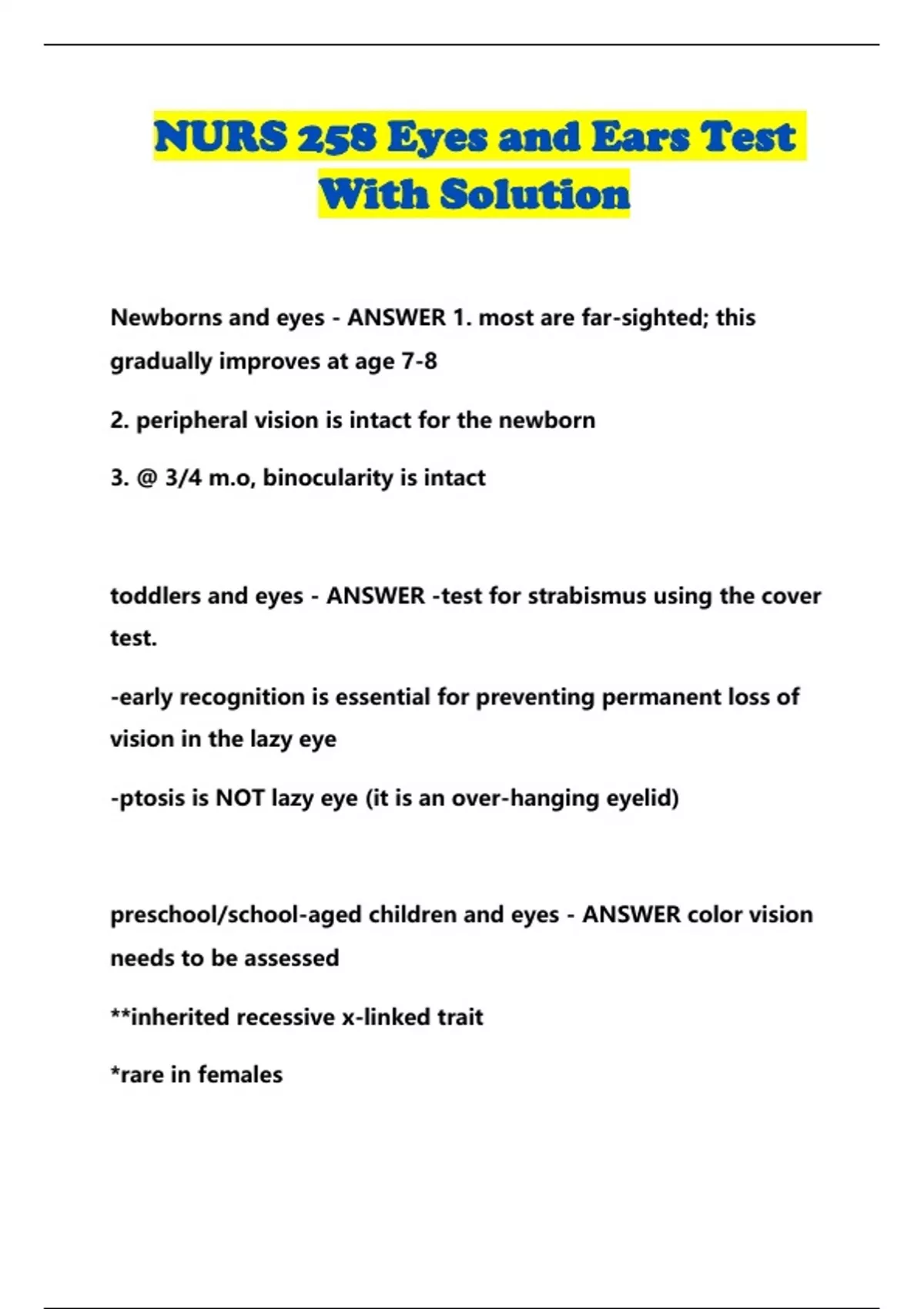 NURS 258 Eyes and Ears Test