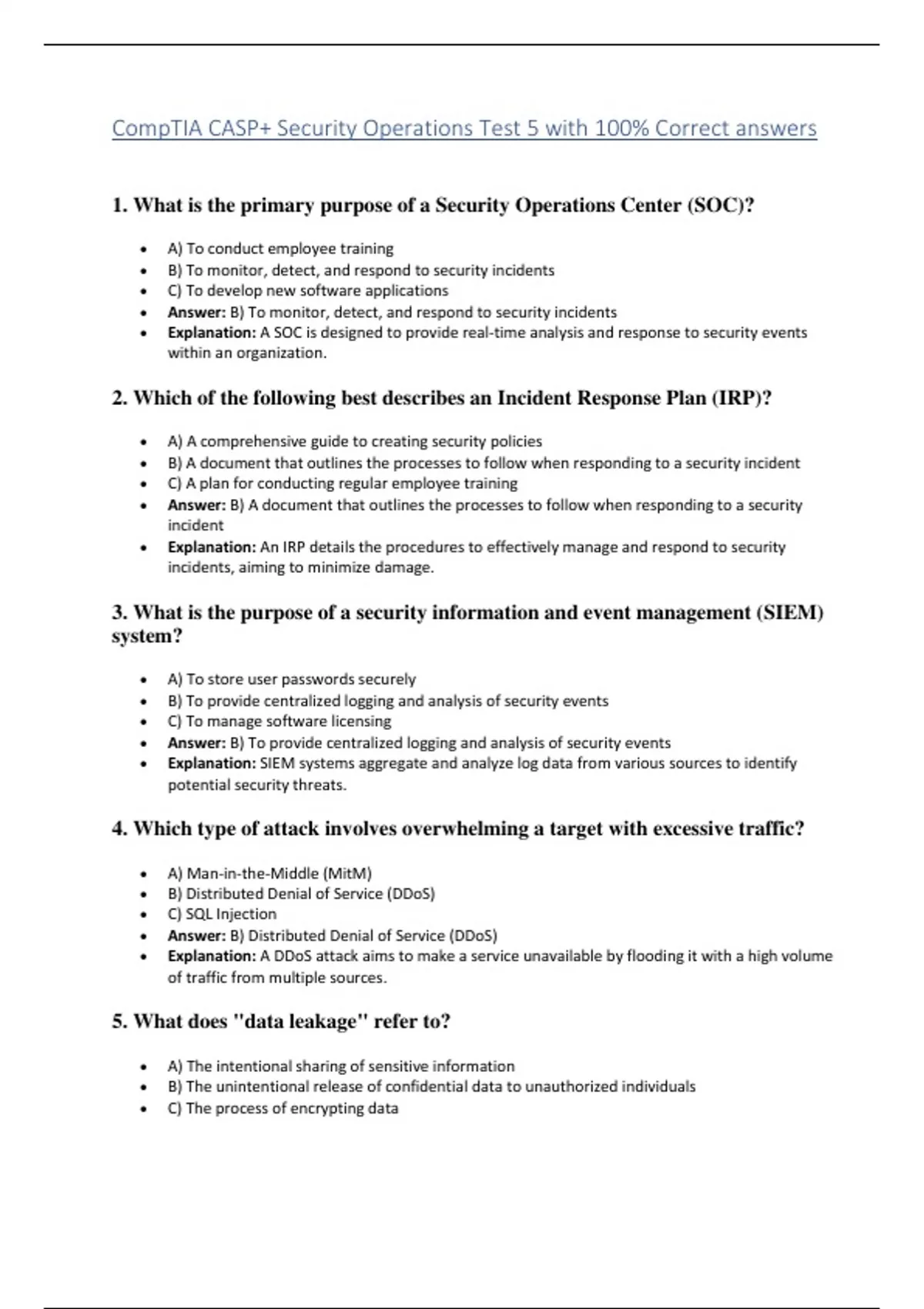 CompTIA CASP+ Security Operations Test 5 with 100% Correct answers