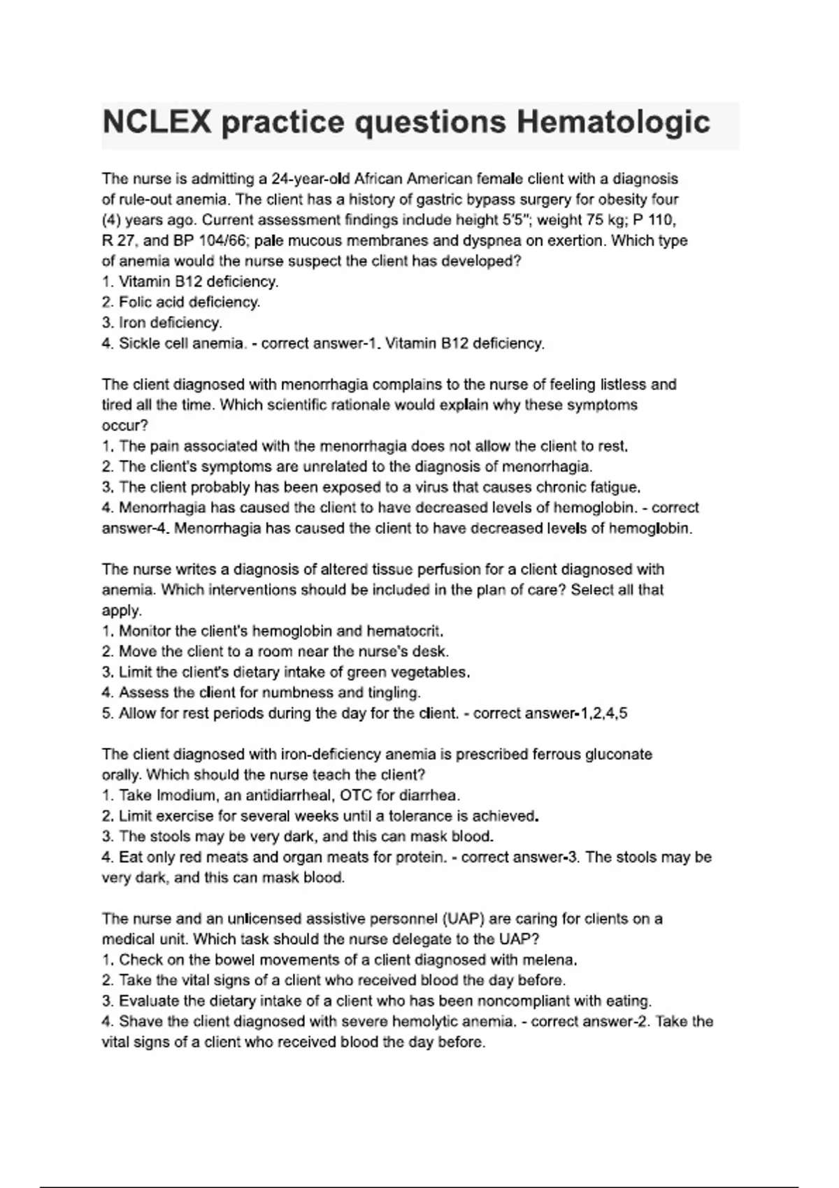 NCLEX practice questions Hematologic